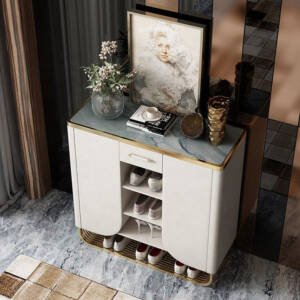 تتميز خزانة الأحذية  هذه بقاعدة معدنية ورفوف تخزين مثالية لتخزين جميع أحذيتك. يمكن أن تستوعب الأرفف ما يصل إلى 8 أزواج من الأحذية، لذلك سيكون لديك دائمًا مساحة كبيرة. كما أن لديها تصميم أنيق، باللون الأسود الذي سيبدو رائعًا في أي منزل أو مكتب. تأتي الخزانة أيضًا مع إعداد سهل التجميع، مما يجعل من السهل تجميعها واستخدامها على الفور. ستتمكن من الحفاظ على حذائك منظمًا وبعيدًا عن الطريق بينما لا تزال تبدو أنيقًا!