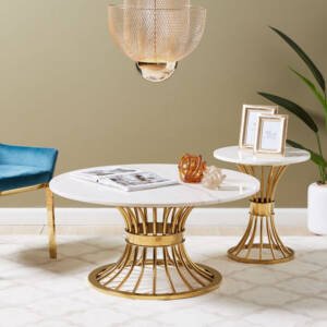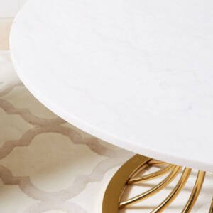 انعكاس فخامة اختياراتك في ديكور منزلك بانتقاء طاولة القهوة الراقية هذه، مصممة بشكل مستدير جذاب المظهر، تأتي خصيصًا للديكورات الداخلية والديكورات الحديثة، ذات سطح أنيق، تأتي بسطح مصنوع من الرخام عالي الجودة، مع قاعدة من مزيج من المعدن، يضفي عليها جمالا لافتًا.