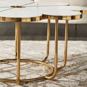 إضافة كلاسيكية فاخرة بتصميم مستوحى من الأزهار الرائعة يكمن في هذه الطاولة الجذابة. تتميز بتصميم مستوحى من الأزهار الرقيقة، وسطح رخامي يعزز جمال أي مساحة. ومصنوعة من خامات عالية الجودة تضمن الاستدامة والتحمل، ويمكن تنظيفها بسهولة عند الحاجة.
