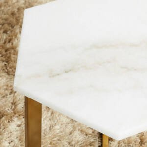 أضيفي لمسة راقية إلى ديكور المنزل باقتناء طاولة القهوة الفاخرة هذه. مصممة بسطح رخامي بنمط عصري، مصنوعة من الفولاذ المقاوم للصدأ لتضمن لك الاستدامة والتحمّل، كما تتميز بقوائم معدنية متينة لمزيد من الجاذبية و الرقي، عمليّة وسهلة التنظيف.