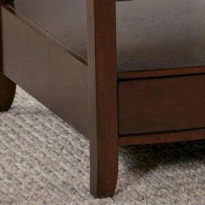 من المؤكّد أنّ هذه الطاولة الجانبيّة الأنيقة ستزيّن أي ركنٍ تختارينه لها. مصممة بسطحٍ زجاجي مع مساحة تخزين سفليّة لمزيد من الفائدة. كما تتميّز بقوامها المميّز وتشطيب قشرة الفينير الذي يجعلها الأبرز في أثاث منزلكِ.