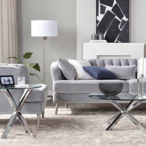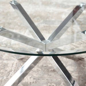 إضافة فاخرة لأثاث منزلكِ العصري يتمثل في طاولة القهوة الجذابة هذه. مصممة بسطح زجاجي معالج حراريًا وقاعدة كروم مطلية تعزز من متانتها، كما أن لها طابع خاص ويمكن تنظيفها بمسحة رقيقة فقط.