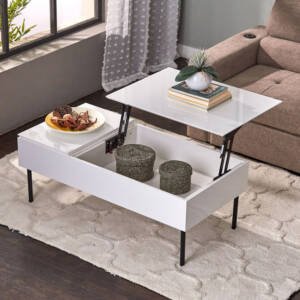 استكملي أثاث منزلكِ بلمسة عصريّة عمليّة بحصولكِ على طاولة القهوة الجذّابة هذه. مصنوعة من الخشب الهندسي والمعدن، متينة وتتميّز بسطح قابل للرّفع يلائم الدّيكورات العصريّة. هذه الطّاولة سهلة التّنظيف وتستحق الاقتناء.