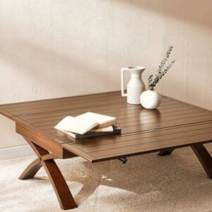 من المؤكد أن طاولة القهوة هذه ستعزز مظهر غرفة المعيشة الخاصة بكِ. تتميز بتصميم جذاب، ومصنوعة من الخشب مع سطح أنيق وأرجل منحنية متينة للدعم. كما يتيح لكِ التصميم القابل للتمديد حمل المزيد من الأشياء بكل سهولة.