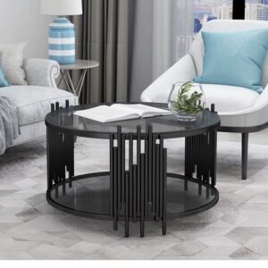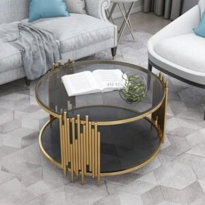 طاولة قهوة من الستيل المذهب تصميم ايطالي سطح الطاولة من رخام عالي الجودة