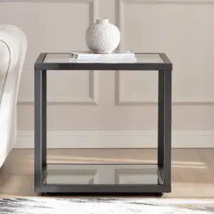 تعتبر الطاولات الجانبية جزءًا لا يتجزأ من تصميم الديكور الداخلي لأي منزل. وتُعتبر هذه الطاولة الجانبية الرائعة خيارًا مثاليًا لإضافة لمسة أنيقة وعصرية إلى مساحة معيشتك. تم تصميمها بشكل مربع ومجهزة برف لتخزين المجلات والكتب، وتمتاز بسطح زجاجي يعزز من جاذبيتها العامة. تم صُنعها بعناية من الزجاج عالي الجودة والمعدن القوي لتكون متينة وتدوم طويلاً.