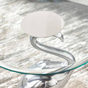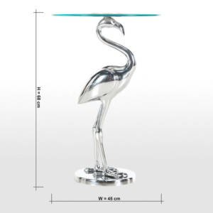 أضيفي لمسة من الأناقة لمنزلك بالحصول على هذه الطاولة الجانبية الرائعة. مصممة بلون أنيق بسطح زجاج معالج حراريًا وقاعدة معدنية مصممة على شكل طائر الفلامنجو يضفي لمسة فريدة لمنزلكِ. يمكن تنظيفها بكل سهولة.