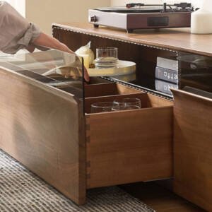 تتميز ترابيزة التفاز بعددة وحدات للتخزين مع تصميم عصري وحديث . وتتميز بلمسة نهائية محايدة تنسق مع أي ديكور تقريبًا ، كما أنها مصنوعة من خشب الزان والقاعدة الصلبة الخشبية لتكمل البنية القوية إلى جانب تصميم ممتع.