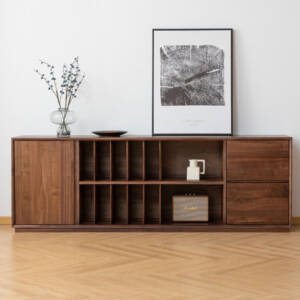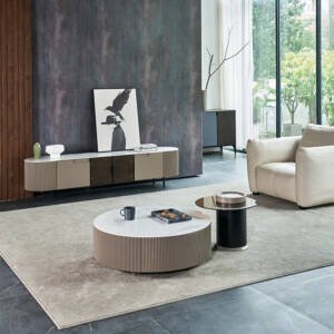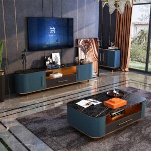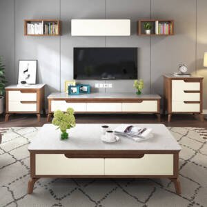طاولة تلفاز مع طاولتين جانبيتين بتصميم خشبي