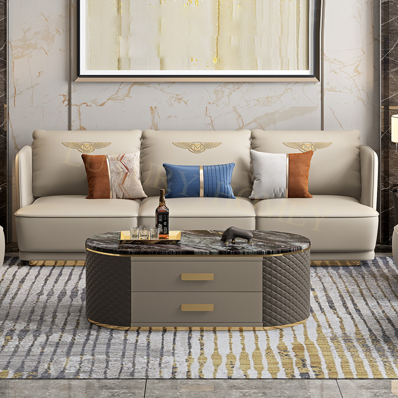 الخامة : هيكل خشبي مصنع من أجود أنواع خشب البلوط الصلب ومبطن بالاسفنج عالي الكثافة المريح ومغطي بأجود أنواع الجلود الايطالية المميزة