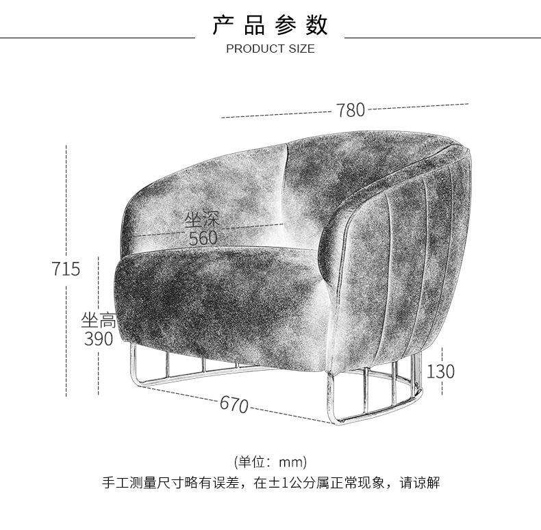 مقاس الكرسي : 56(D)*78(W)*71(H) سم