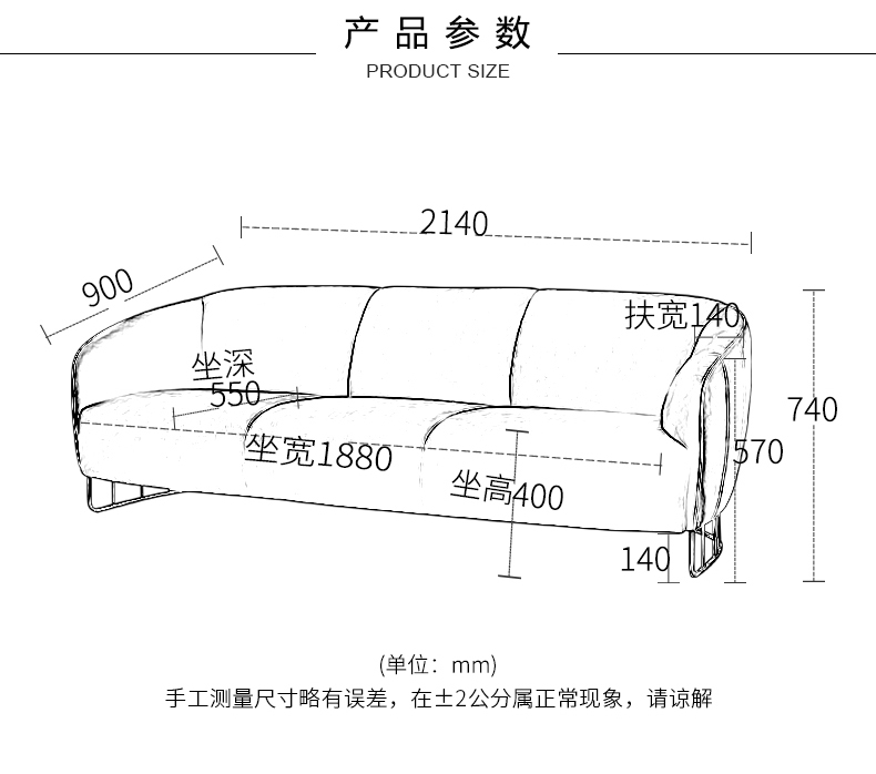 مقاس الأريكة : 90(D)*214(W)*74(H) سم