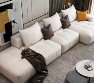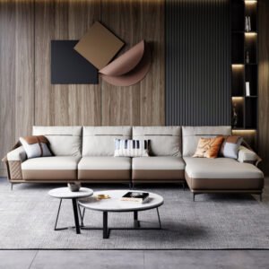 أريكة جلد بتصميم ايطالي فريد على شكل حرف L