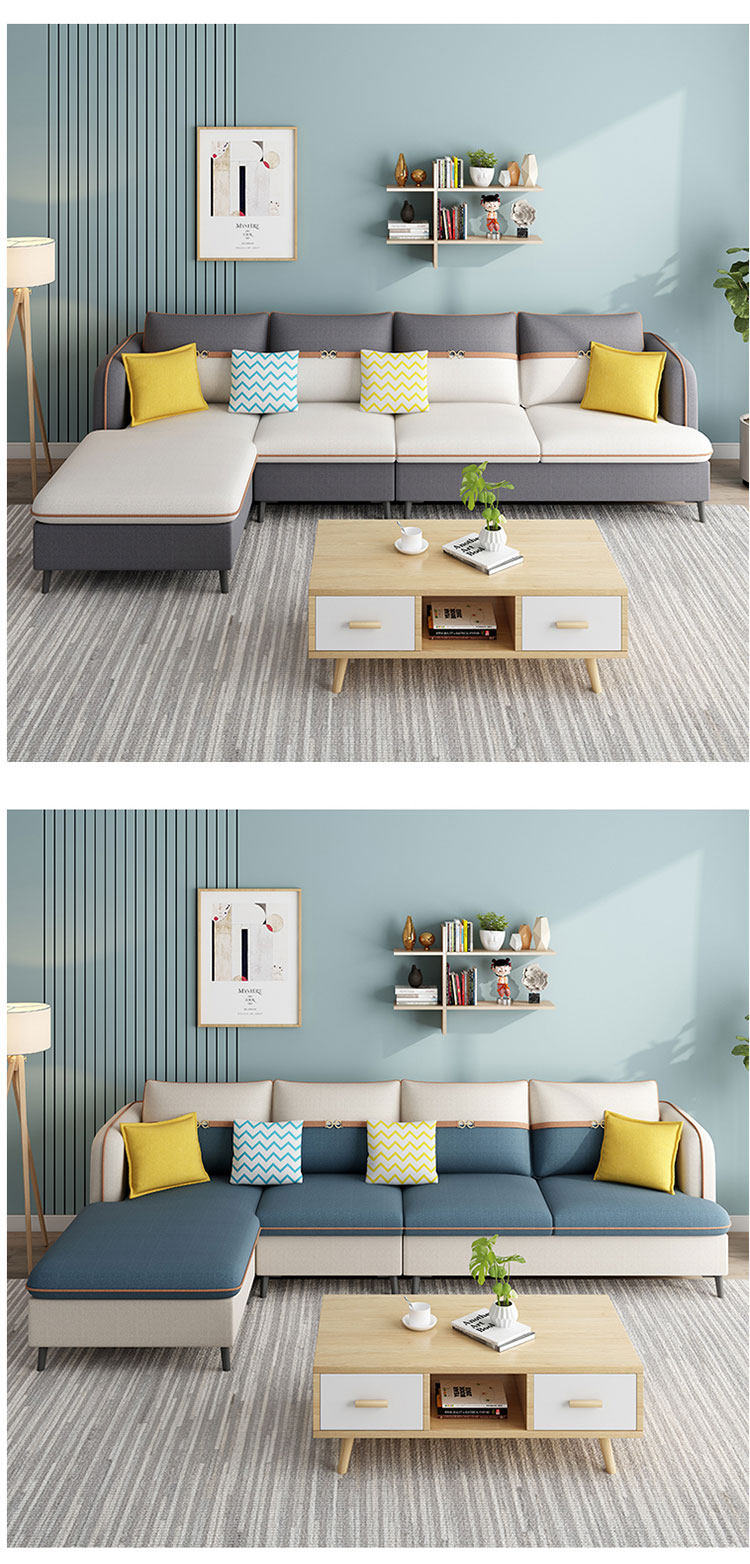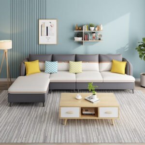 تصميم عصري وفريد من كنبة قماش منزلية، مبطنة بالإسفنج عالي الكثافة، ولها هيكل خشبي متين، ومغطاة بالقماش الناعم المريح، لها مظهر عصري أنيق يناسب مختلف الديكورات والأذواق، متوفرة بأشكال مختلفة لاتجاه مسند القدم يمينا ويسارا.