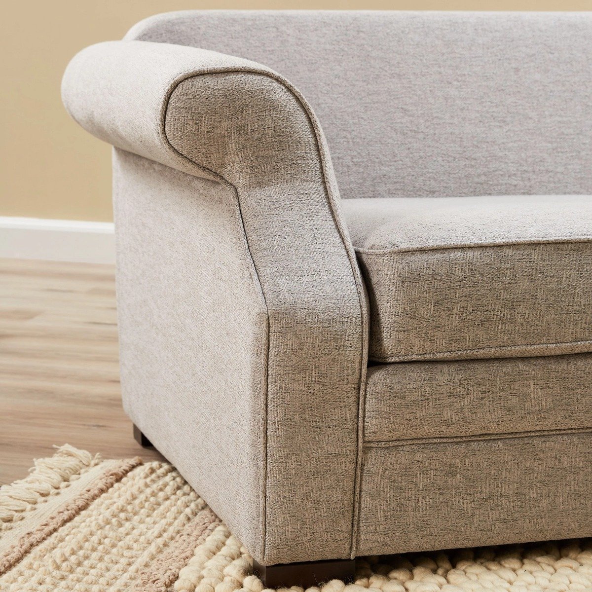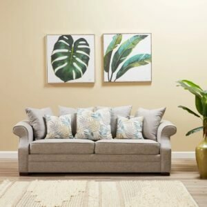 اصنعي ركنًا من الراحة والجاذبية لغرفة نومك بالحصول عى هذ الكنبة القماشية الراقية، بتنجيد من القماش عالي الجودة، مقاوم للانجذاب الكهربائي، يأتي بإطار من الخشب الصلب، محشوة بالإسفينج وألياف عالية الجودة، مع وسائد مزخرفة، تأتي بثلاثة مقاعد، تلائم الجلسات العائلية الدافئة، عميقة تغمرك في راحة مثالية، سهلة التنظيف بالطريقة الاحترافية.