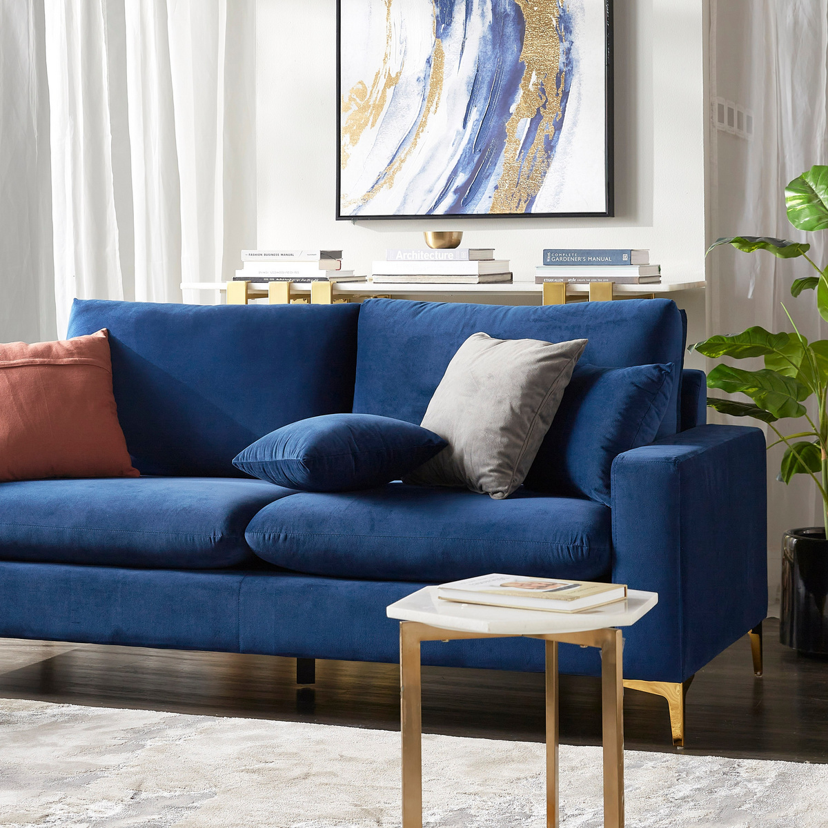 ارتقي بديكور غرفة معيشتك باقتناء هذه الكنبة الفاخرة. مصممة بنمط معنقد وتصميم جذاب، كما تأتي بتنجيد مخملي ناعم وقوائم ميتاليك تزيد التصميم فخامة، إضافة إلى حشو من الإسفنج والألياف لضمان راحة لا تضاهى؛ يمكن تنظيفها بالطريقة الاحترافيّة للاعتناء بها.