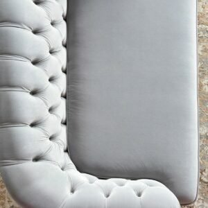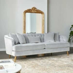 ارتقي بديكور غرفة معيشتك باقتناء هذه الكنبة العصرية. مصممة بنمط معنقد وتصميم جذاب، كما تأتي بتنجيد قماش مخملي ناعم وقوائم ذهبيّة، إضافة إلى إسفنج البولي يوريثان وألياف البوليستر لضمان راحة لا تضاهى؛ يمكن تنظيفها بالطريقة الاحترافيّة كلما لزِم الأمر.