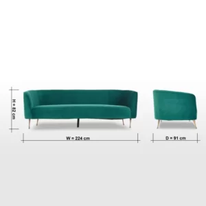 اعتمدي هذه الكنبة الرائعة لإضافة لمسة من الفخامة إلى أثاث منزلكِ، مصممة بـ3 مقاعد وتنجيد مخملي فاخر وقوائم معدنية ومساند ذراعين منحنية، ومصنوعة من خامات عالية الجودة، وتتطلب تنظيفًا احترافيًا عند الحاجة.