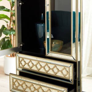 إليك هذه الخزانة الأنيقة، مصممة بطابع معتّق أنيق، تتمتّع ببابين مع درجين لتضمن لك مساحة وفيرة تتسّع لمختلف أواني المشروبات بشكل أنيق ومنظّم، ما يجعلها تستحق الاقتناء.