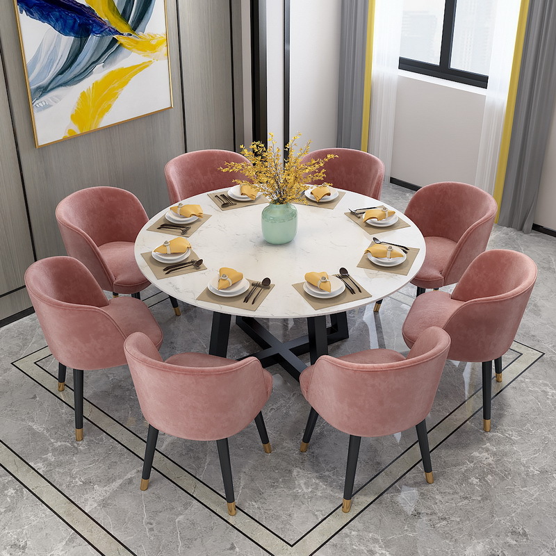 وصف المنتج:-النوع: سفرة رخامية + مقاعد المواد: المعدن عالي الجودة سطح الطاولة من الرخام الصلب السمات: طاولة مستديرة مع قرص دوار مستدير مقاس الطاولة: 180*85 cm مقاس الكراسي: 46*43*83 cm لون الطاولة: سطح أبيض لون الكراسي: (وردي )لون الاطار: (ذهبي – أسود)المظهر: حديث و مختلف الاستخدام العام: أثاث منزلي الاستخدام الخاص: أثاث غرفة المعيشة النمط الإقليمي: النمط الأوروبي منتج عالي الجودة خامات ممتازة بلد المنشأ: الصين كود المنتج: 44539