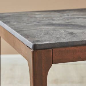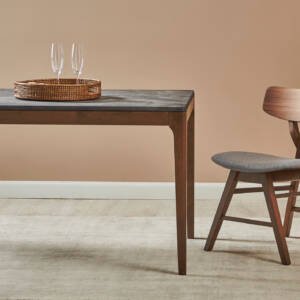 كل ما تحتاجينه لترتقي بديكور عصري وفخم هو طاولة السفرة الرّائعة هذه، مصممة لتتسّع لـ6 أفراد، مصنوعة من الخشب بلون خشبي داكن مع تشطيب ميلامين يعزّز مظهرها. كما تتميّز بسطح رخامي وقاعدة مقوّاة يزيد متانتها. نظّفيها بمسحة رقيقة من حين لآخر للحفاظ على رونقها.