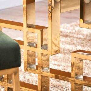 لا غنى عن إضافة هذه الطاولة العملية إلى أثاث المنزل، مصمّمة بطابع جذّاب، بسطح زجاجي وقوائم معدنية ولون الذهبي المميز، ومصنوعة من خامات متينة،. سهلة التنظيف، وتضمن لكِ استخدامًا طويل الأمد.