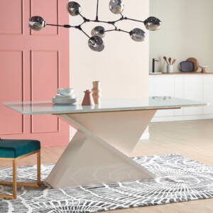 اجعلي وقت تناول الطعام وقتًا ممتعًا مع طاولة الطعام هذه المصمّمة لاستيعاب ثمانية مقاعد. مصنوعة من الخشب المصمم هندسيًا بلمسة نهائية مثالية تضيف لجاذبيّتها وتعزز جمال غرفة طعامك.