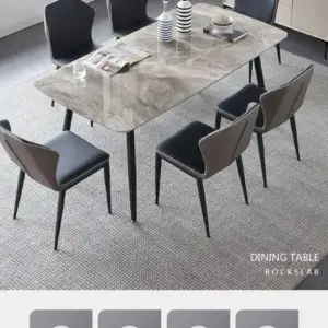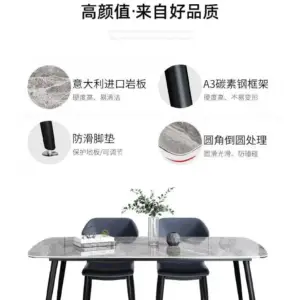 طاولة طعام حديثة مصممة لإضفاء طابع مميز في أي منزل، هذه القطعة الأنيقة والعصرية مصنوعة من الرخام المقوى والمعدن. يوفر الرخام المقوى سطحًا متينًا يمكن تنظيفه بسهولة بعد الوجبات، بينما توفر الأرجل المعدنية أقصى قدر من الثبات. بتصميمها الجريء والمعاصر، من المؤكد أن طاولة الطعام هذه ستصبح محور أي غرفة طعام أو مطبخ.