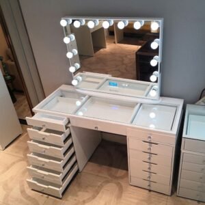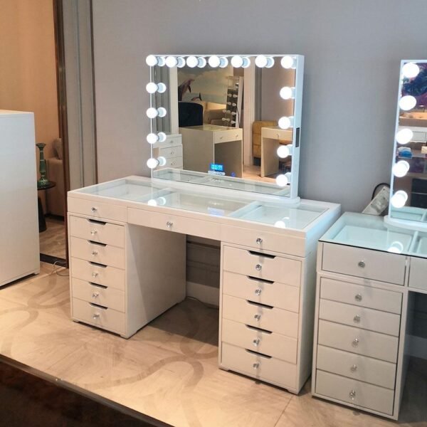 المقاس: (العرض 150*العمق 60*الطول 81 سم) الخامة: مصنع من خشب mdf عالي الجودة زجاج عالي الجودة اللون : أبيض