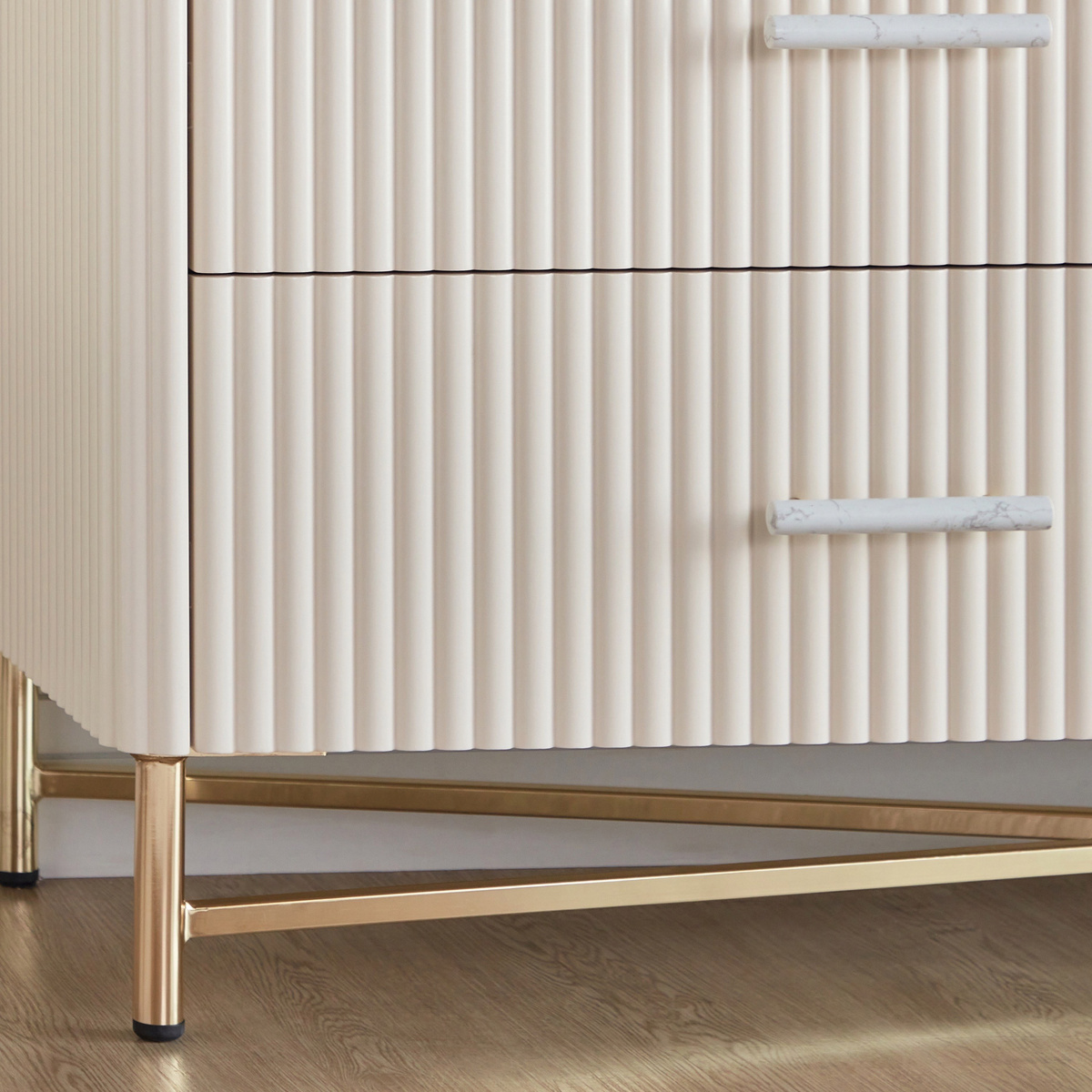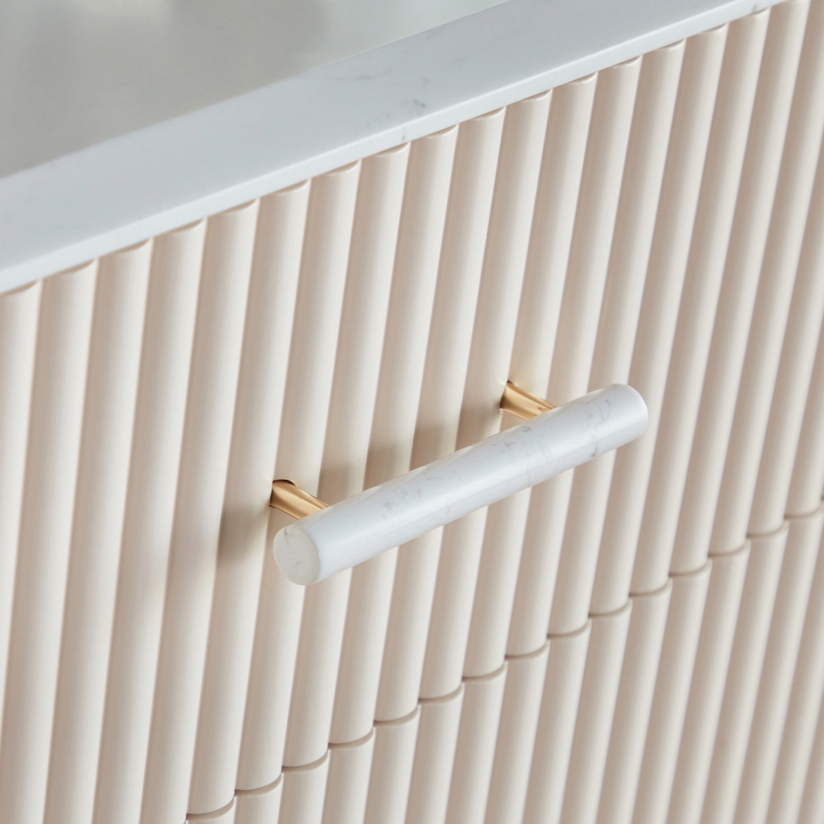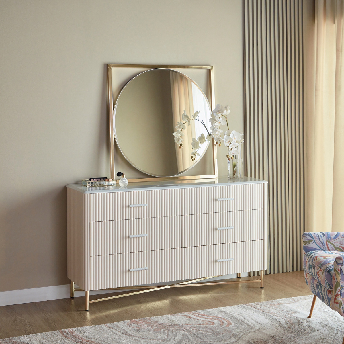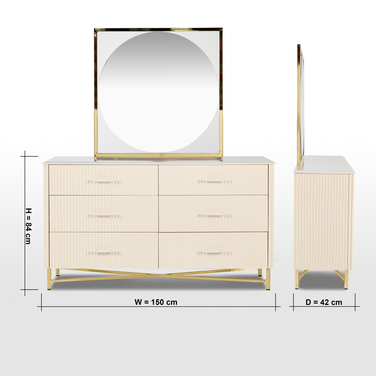 أضيفي مزيدا من القطع الأساسية للتخزين في منزلك العصري بالحصول على طاولة التزيين الفاخرة هذه. مصممة بنمط مضلع وتشطيب مطلي يعزز من جاذبيتها، كما تم صُنعها من الخشب الهندسي المتين بستة أدراج ومرآة لمزيد من الفائدة.