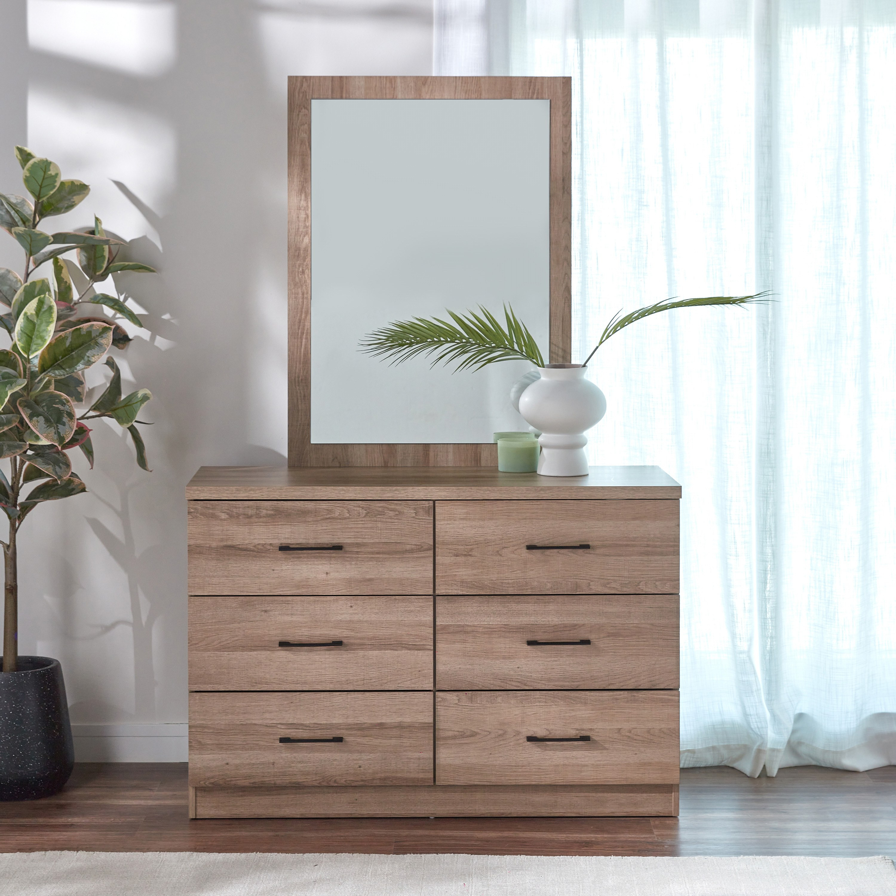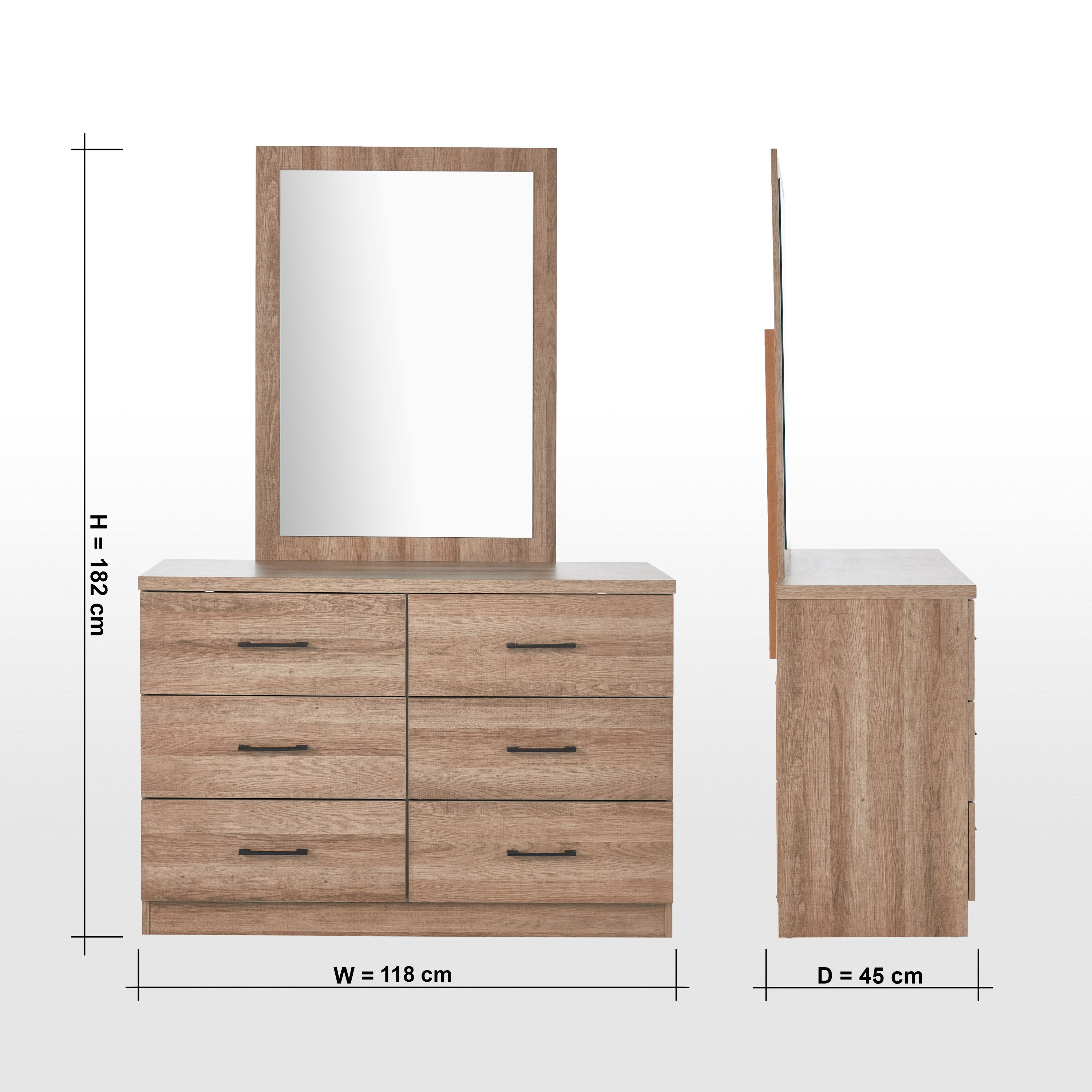 اجمعي بين الفخامة والرقي في منزلك بالحصول على طاولة التزيين الرائعة هذه، مصممة بطابع فريد، ومزودة بمساحة تخزين وفيرة بـ6 أدراج واسعة لاستيعاب العديد من احتياجاتكِ. مصنوعة من الخشب الهندسي عالي الجودة، وسهل التنظيف بمرآة أنيقة، مما يجعلها اقتناء مثالي يكمل ديكورات غرفة نومكِ.