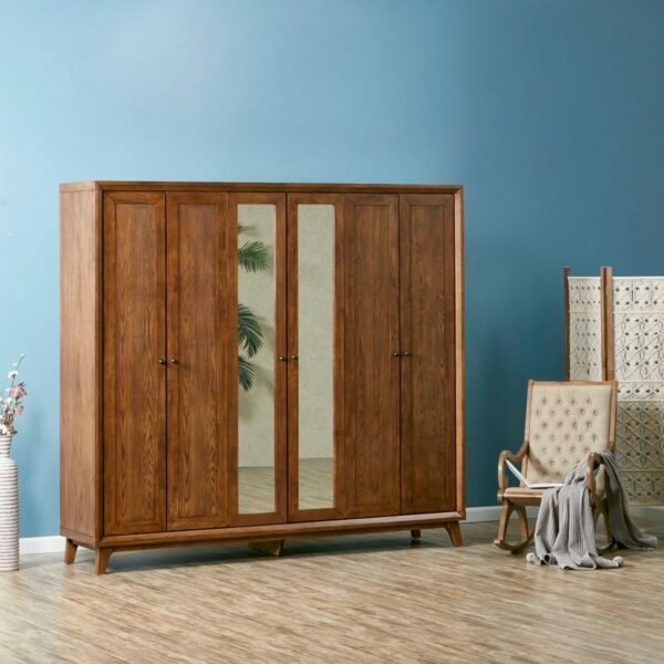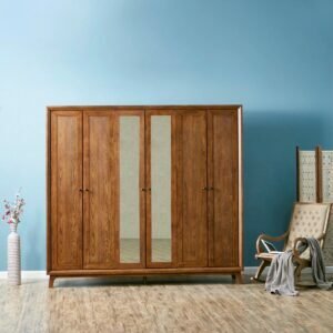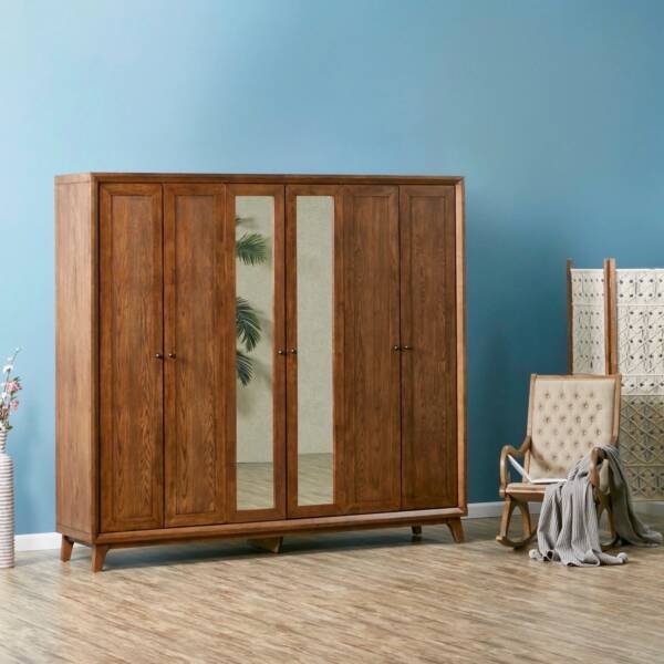 رتّبي ملابسك بطريقة رائعة بالحصول على خزانة الملابس الفاخرة هذه، مصممة بستة أبواب عملية، تلائم ترتيب المستلزمات المتنوعة، ذات مساحة وفيرة، مصنوعة من مادة متينة عالية الجودة، بباب في المنتصف بمرآة خارجية، تعزز من مظهره، بالإضافة إلى أنّها تتمتّع بتشطيب شبه خشبي يعزّز من جاذبيّتها.
