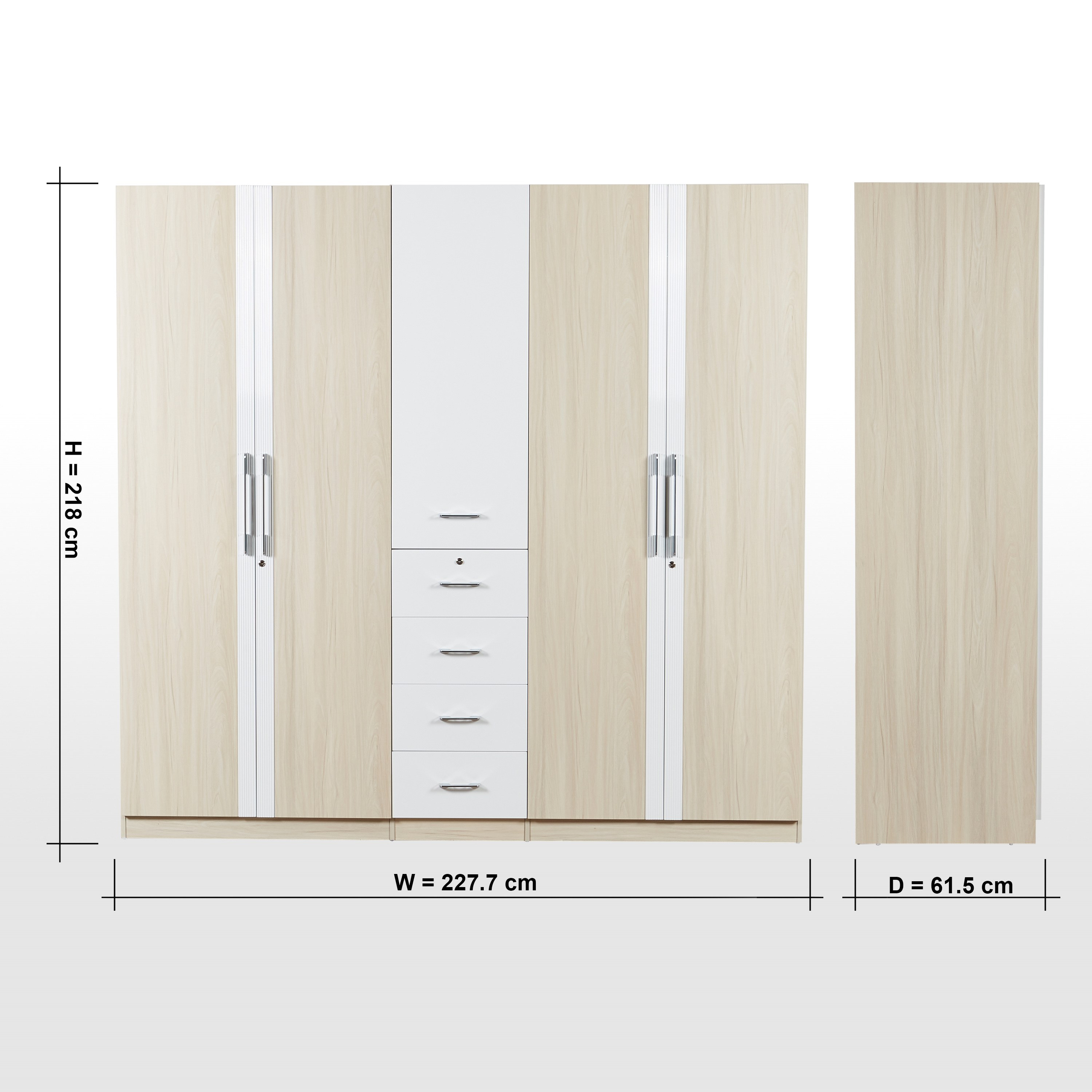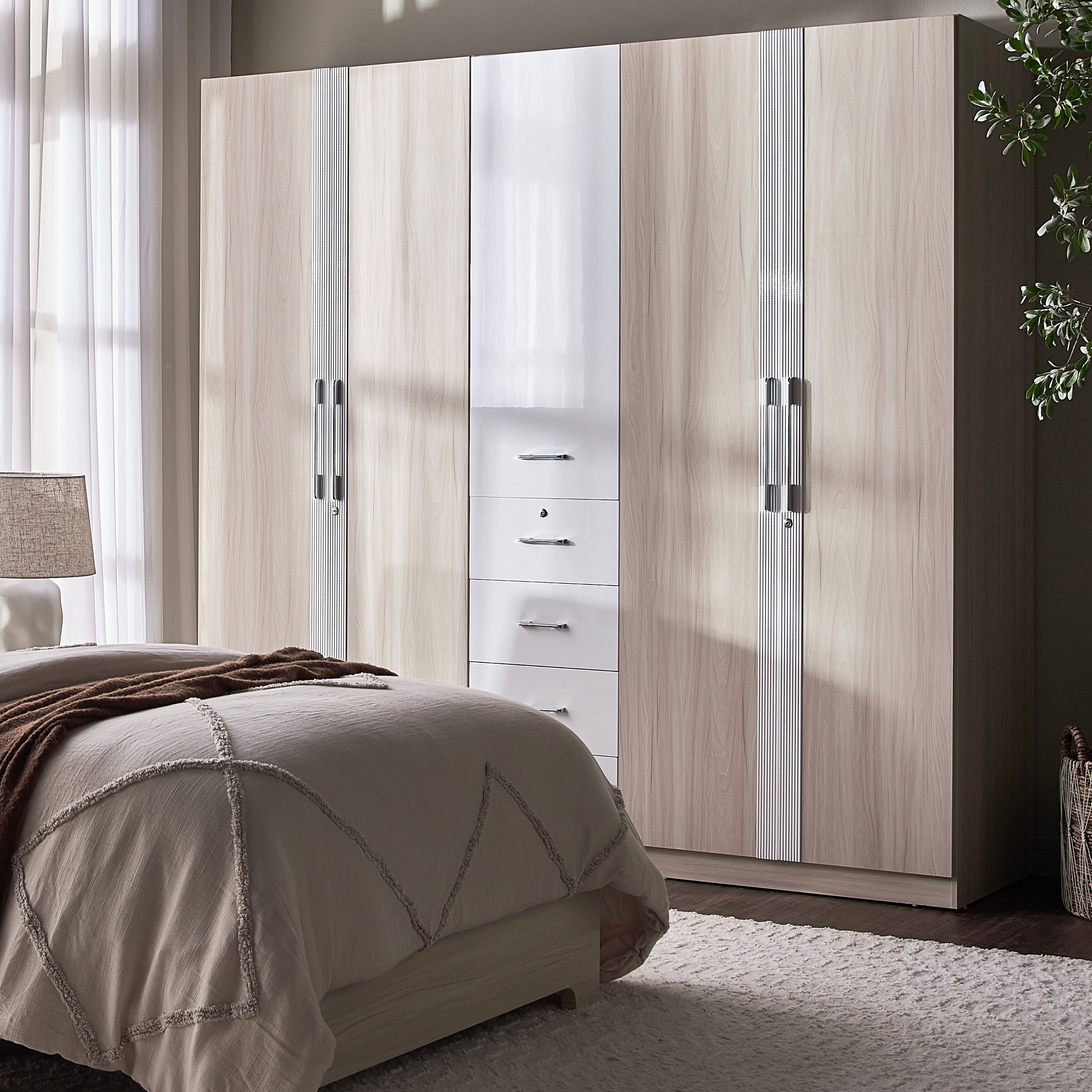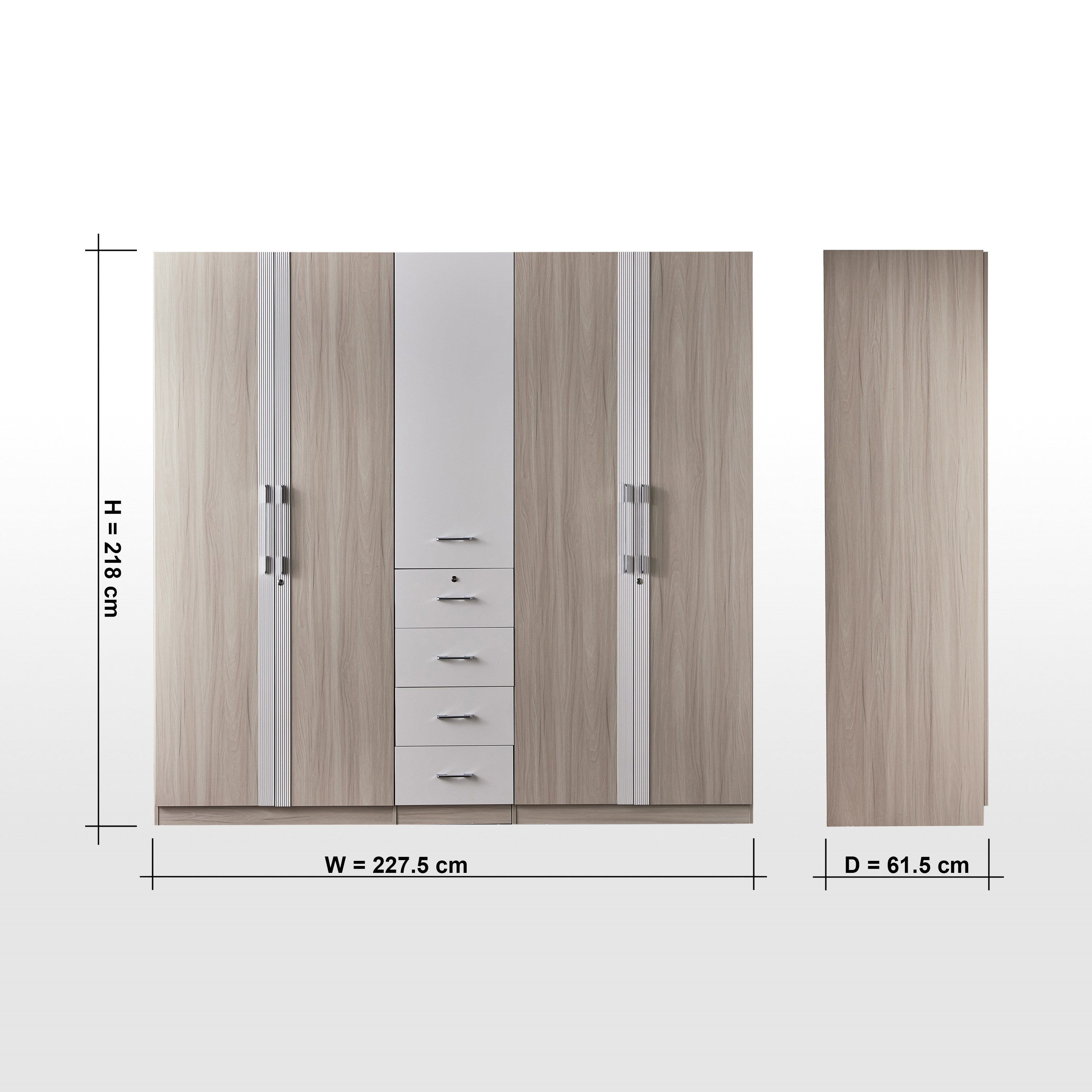 عززي من أناقة قطع الأثاث في منزلكِ باقتناء خزانة الملابس الرائعة هذه، تتسم بطابع عصري وتصميم عملي ومساحة وفيرة بخمسة أبواب، ومصنوعة من خامات الميلامين عالية الجودة لضمان الاستدامة والتحمل، ويمكن تنظيفها بسهولة.