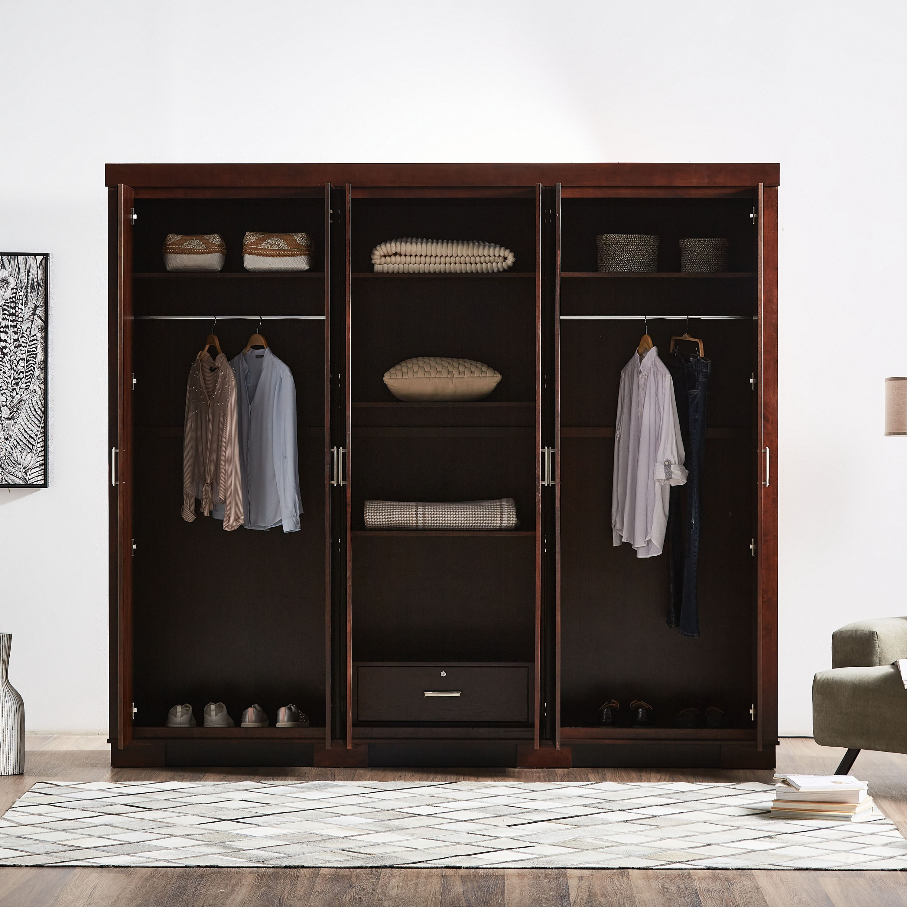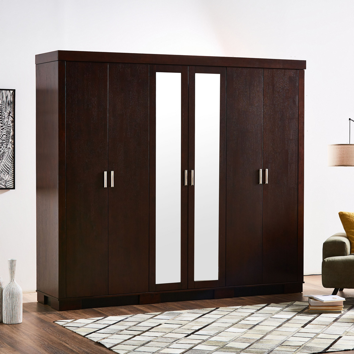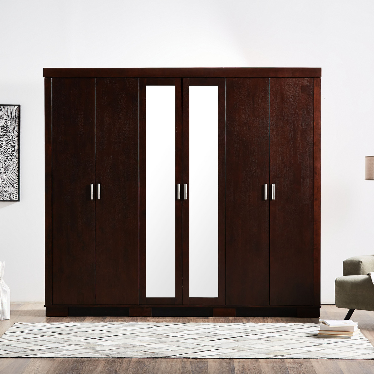أحضري خزانة الملابس هذه إلى غرفة نومك لمنحها لمسة من الرقي. إنها مصممة بستة أبواب تكشف عن مساحة تخزين مقسمة إلى أرفف قابلة للتعديل وأقسام تعليق، إلى جانب مرآتين. هذه الخزانة مصنوعة من الخشب الهندسي، ولها قاعدة متينة وصلبة. كما أنها سهلة الصيانة، ويمكنكِ تنظيفها من وقت لآخر.