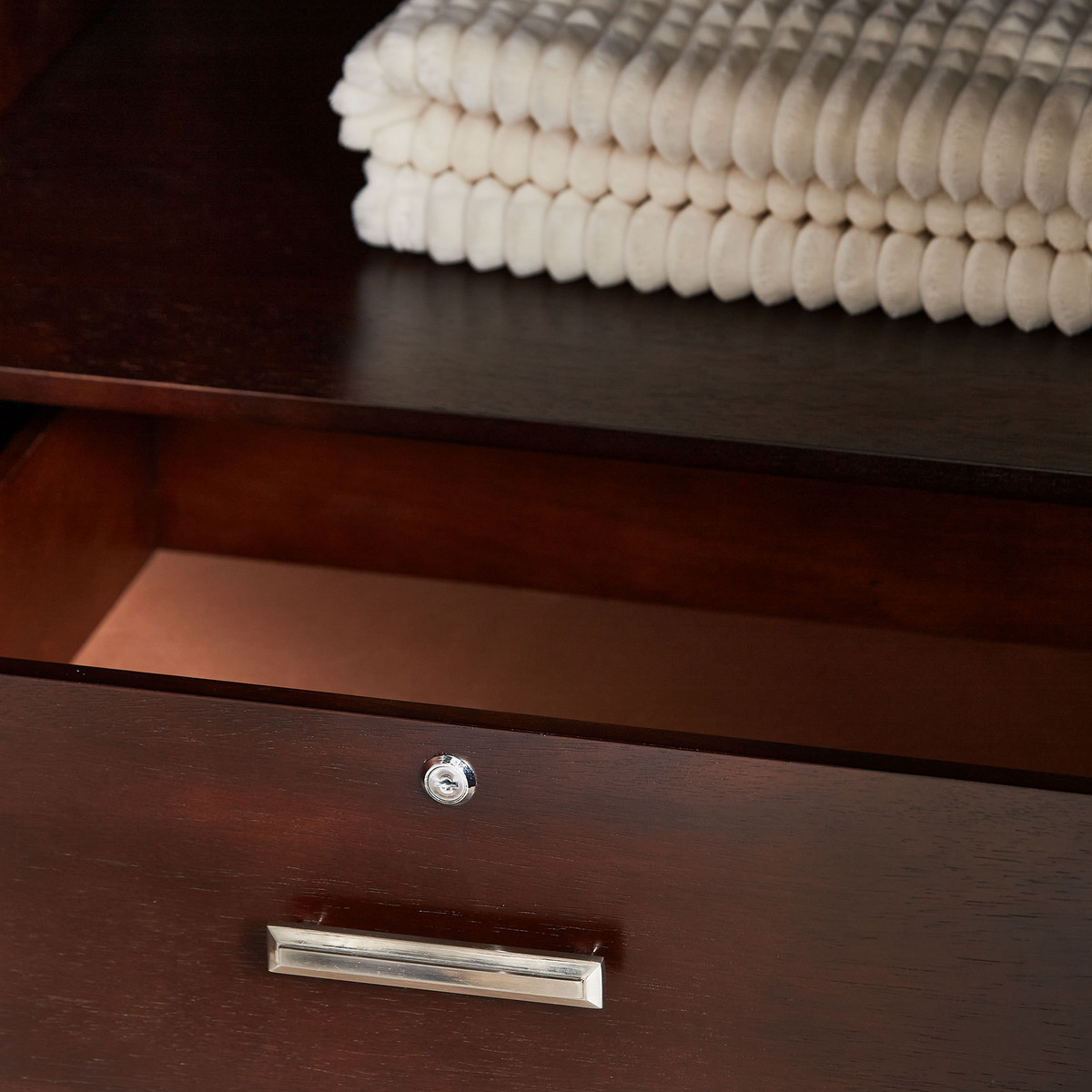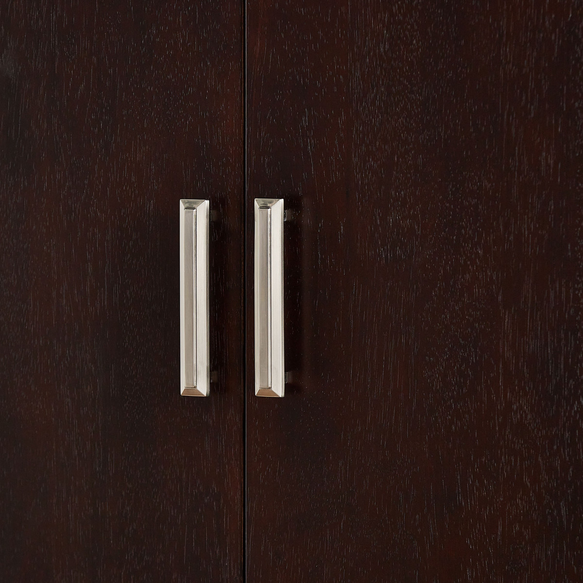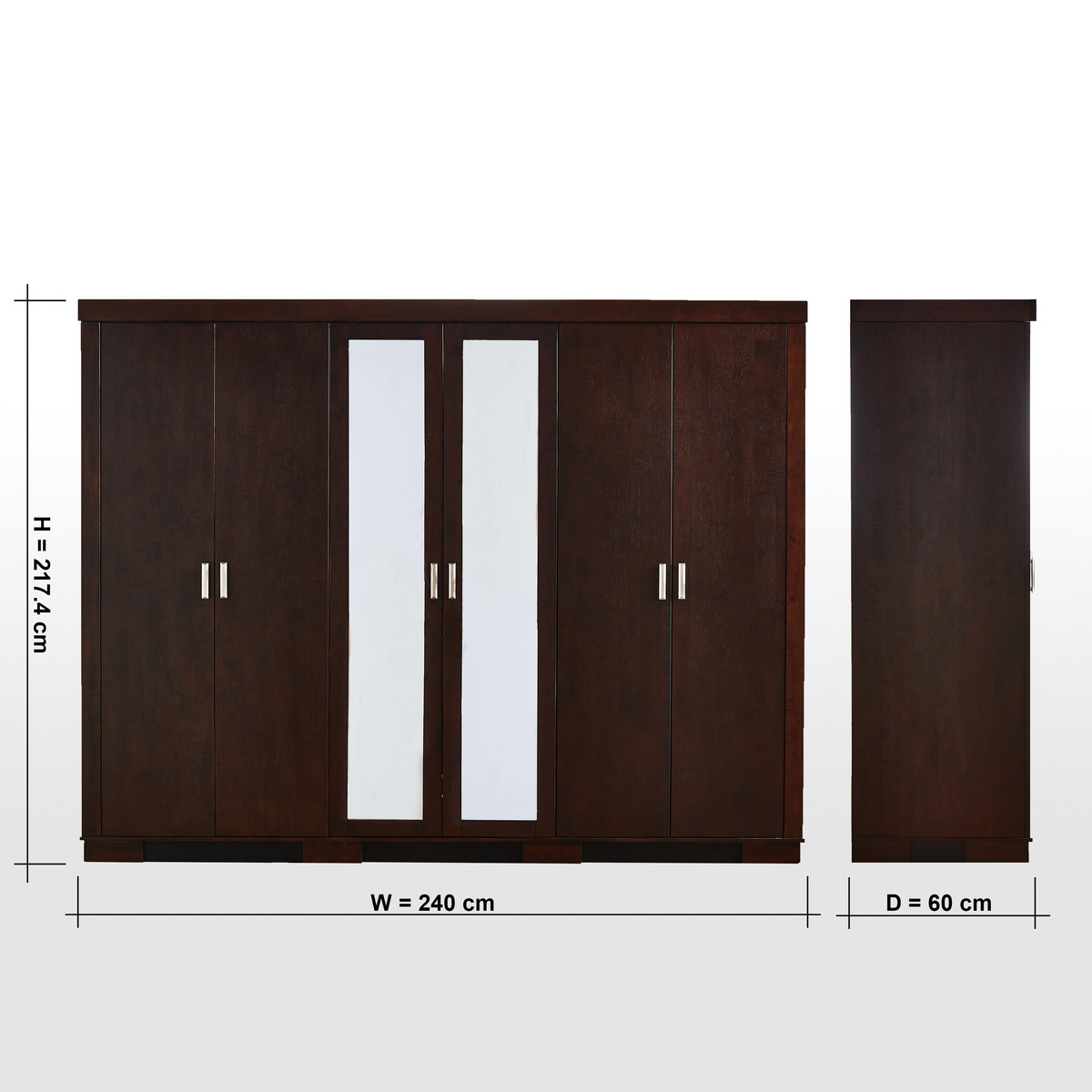 أحضري خزانة الملابس هذه إلى غرفة نومك لمنحها لمسة من الرقي. إنها مصممة بستة أبواب تكشف عن مساحة تخزين مقسمة إلى أرفف قابلة للتعديل وأقسام تعليق، إلى جانب مرآتين. هذه الخزانة مصنوعة من الخشب الهندسي، ولها قاعدة متينة وصلبة. كما أنها سهلة الصيانة، ويمكنكِ تنظيفها من وقت لآخر.
