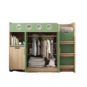 يتميز السرير بتصميم شيك ومتين مع مكتب داخلي وعلاقة ملابس ليعمل بشكل جيد في كل من الراحة والمهام اليومية. يتميز بلمسة نهائية محايدة تنسق مع أي ديكور تقريبًا ، كما أن السرير المصنوع من الخشب الزان يمنحه تصميم ممتع ورائع.