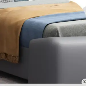 يتميز السرير بتصميم عصري وأنيق يتناغم مع أي مساحة. مصنوع من خشب هندسي وخشب زان روماني عالي الجودة، ومغطى بالجلد المصنع الإيطالي لتوفير الراحة والأناقة في النوم.