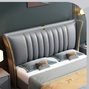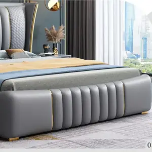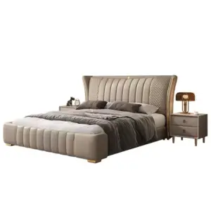 السرير الممتاز يتمتع بتصميم فريد ومميز، مصنوع من الخشب الهندسي والخشب الزان الروماني عالي الجودة. يغطيه الجلد المصنع الإيطالي لإضفاء لمسة من الفخامة والأناقة على أي غرفة نوم.