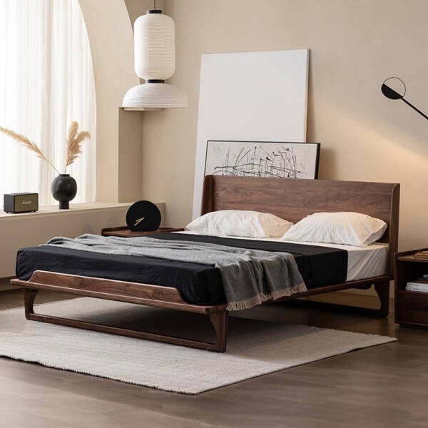 مصنع هيكل السرير من خشب الجوز الاسود عالي الجودة