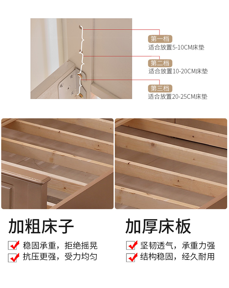 أرجل السرير سميكة ومتينة لقوة تحمل مع ثبات قوي للمنتج
