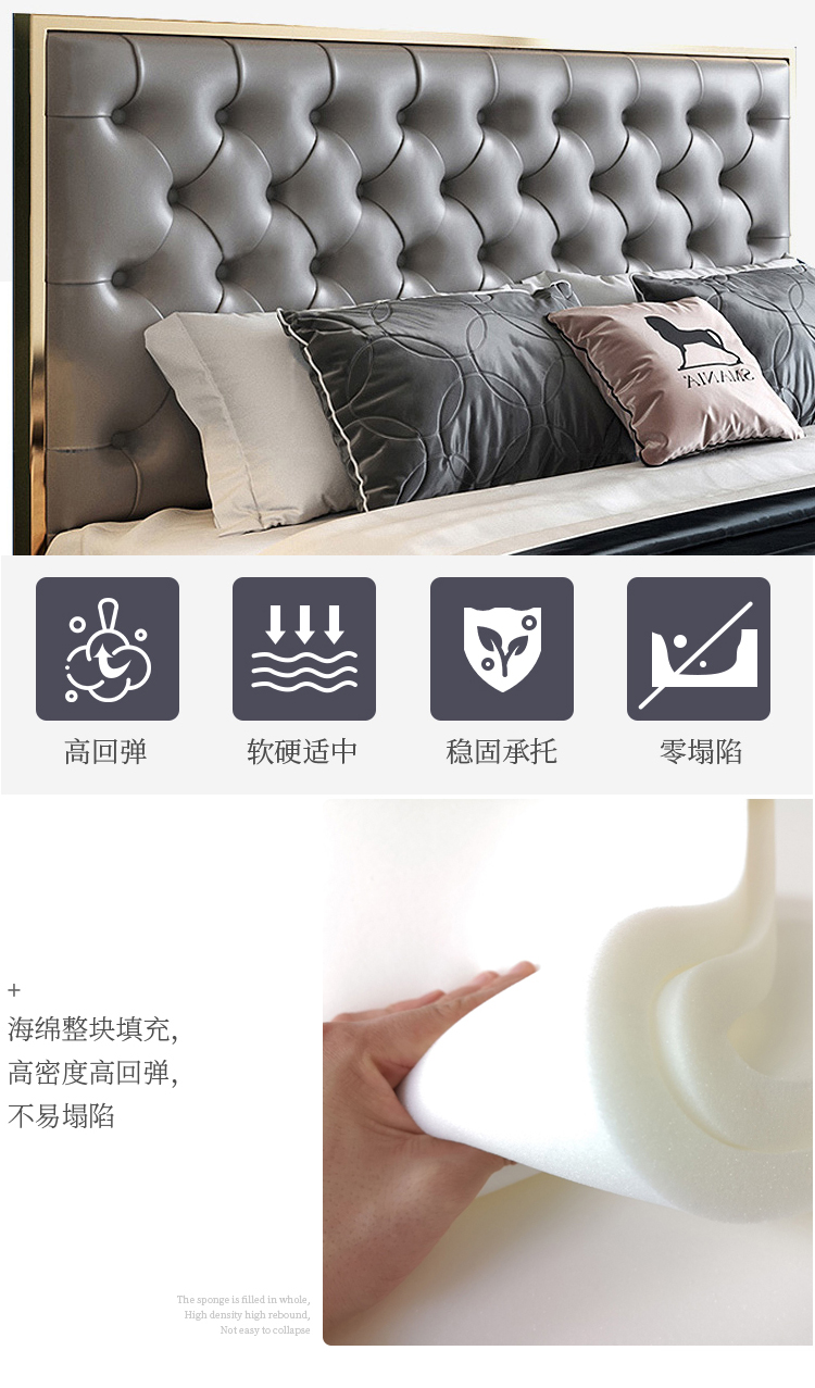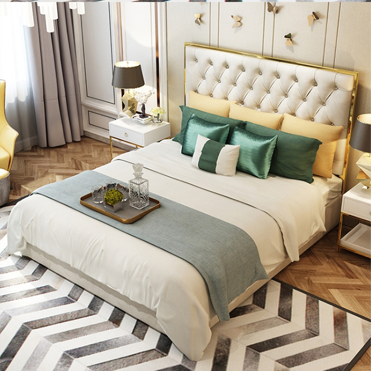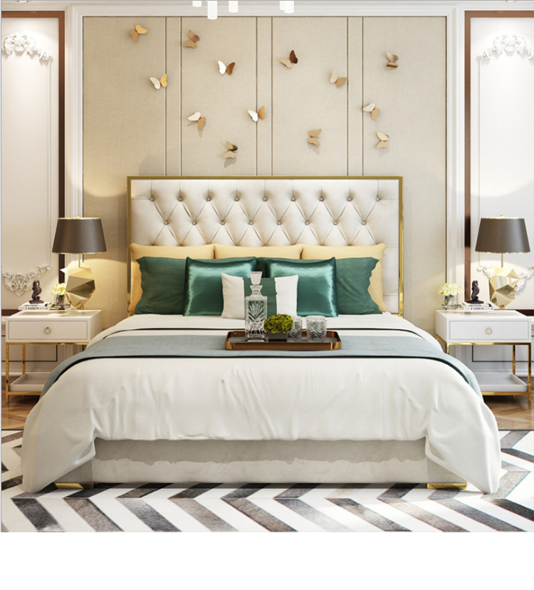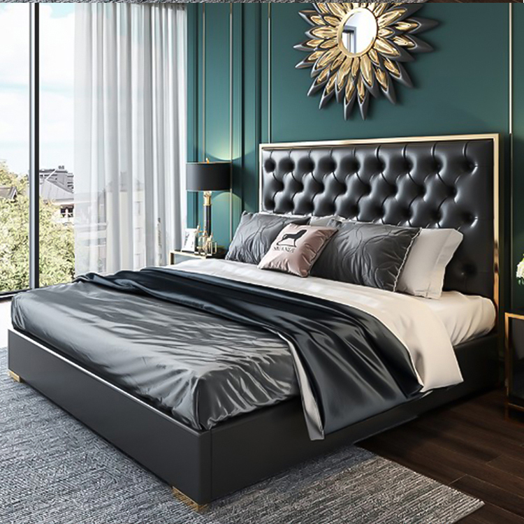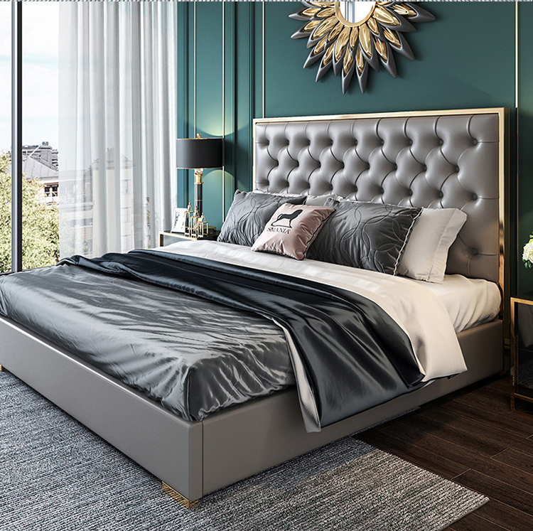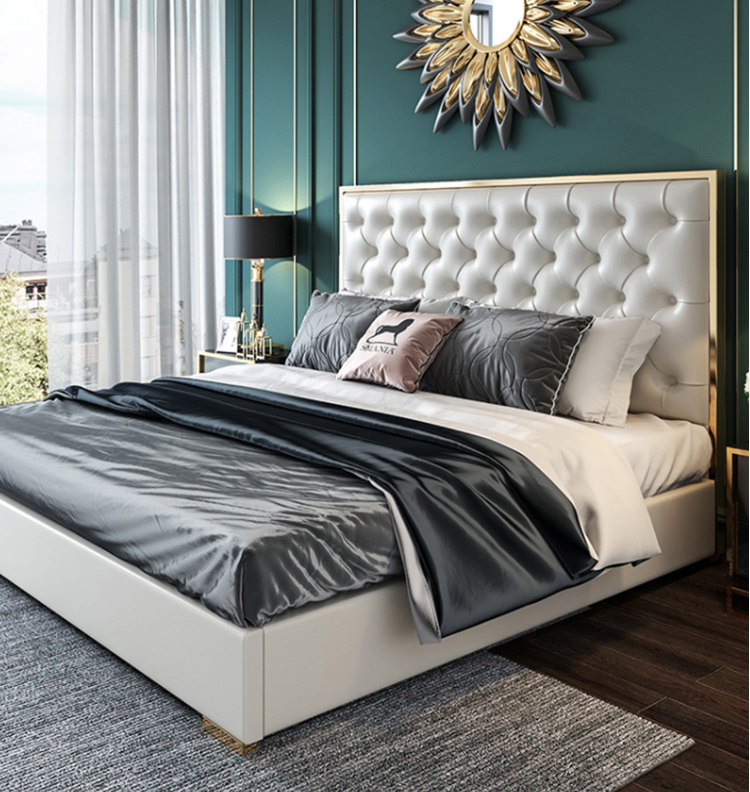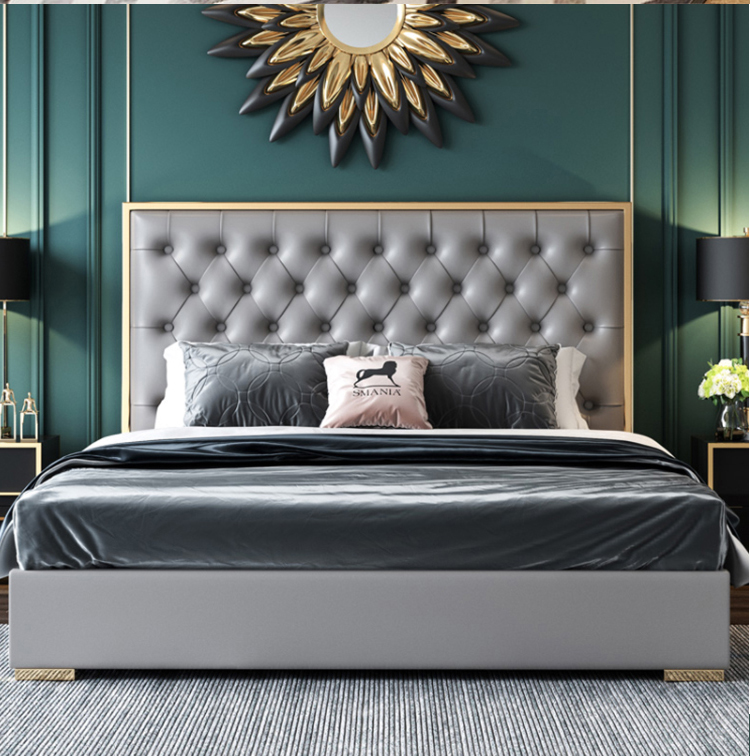 أقدام السرير سميكة لقوة تحمل مع ثبات قوي للسرير مسند الظهر من الجلد المطرز بعناية