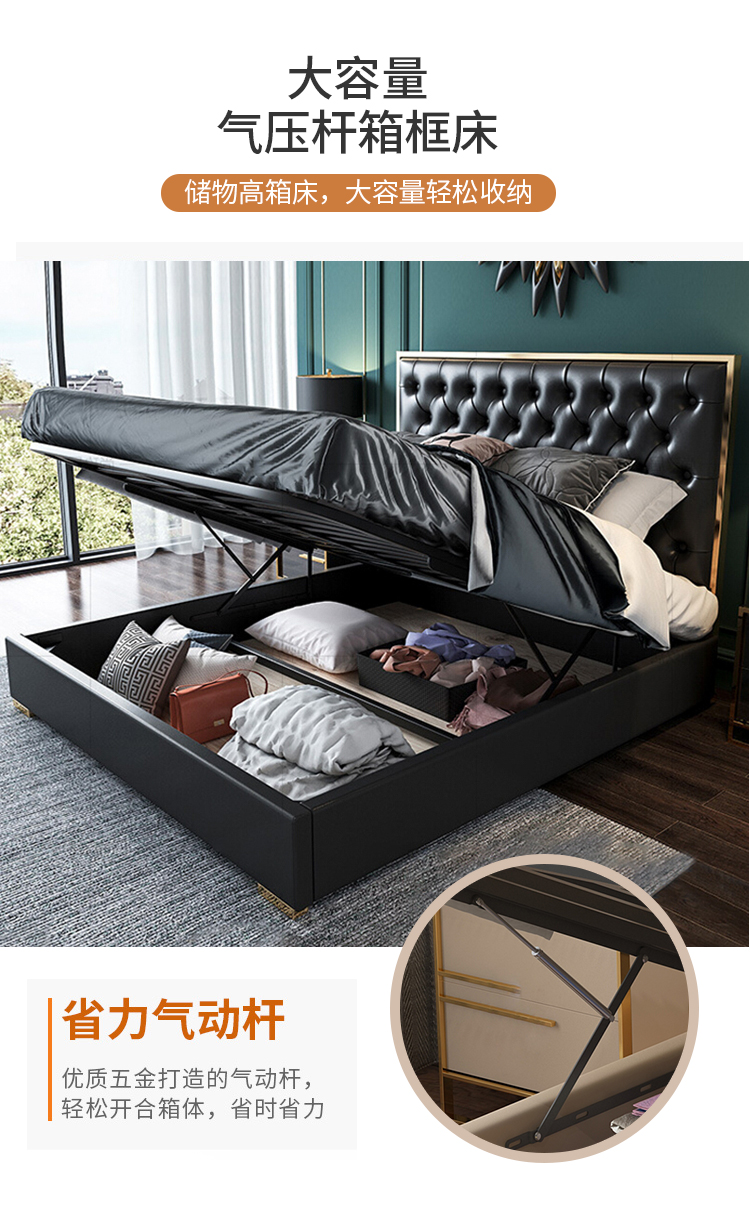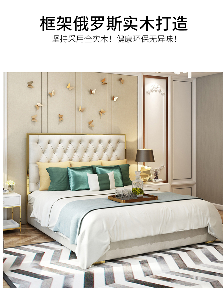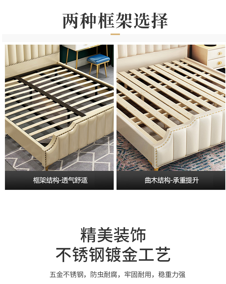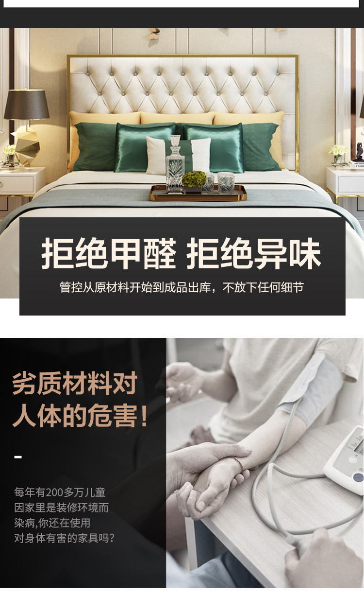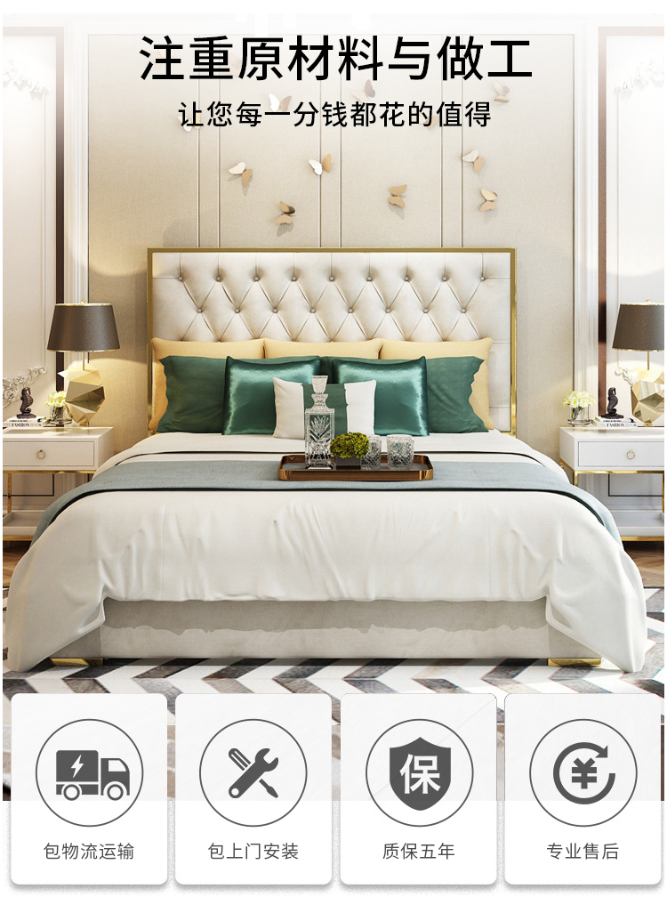 أقدام السرير سميكة لقوة تحمل مع ثبات قوي للسرير مسند الظهر من الجلد المطرز بعناية