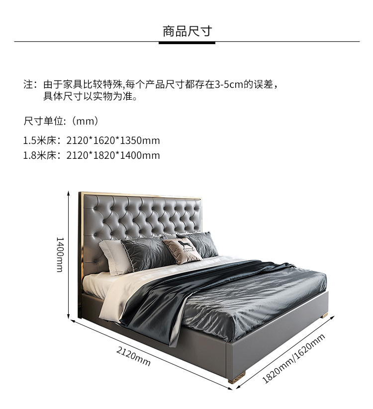 المقاس : 212(D)*150(W)*140(H) سم / 212(D)*180(W)*140(H) سم
