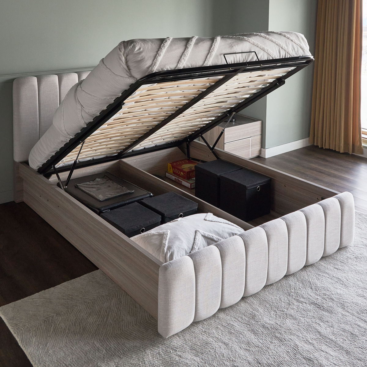 جددي غرفتكِ باقتناء هذا السرير الرائع. مصنوع من خامات عالية الجودة ومتينة، بنمط أنيق وطابع عصري يتميّز بتشطيب ورنيش يعزّز من جاذبيّته. سهل التنظيف ويأتي بوحدة تخزين هيدروليك لاستعمال عملي بمزيد من الفائدة.