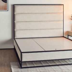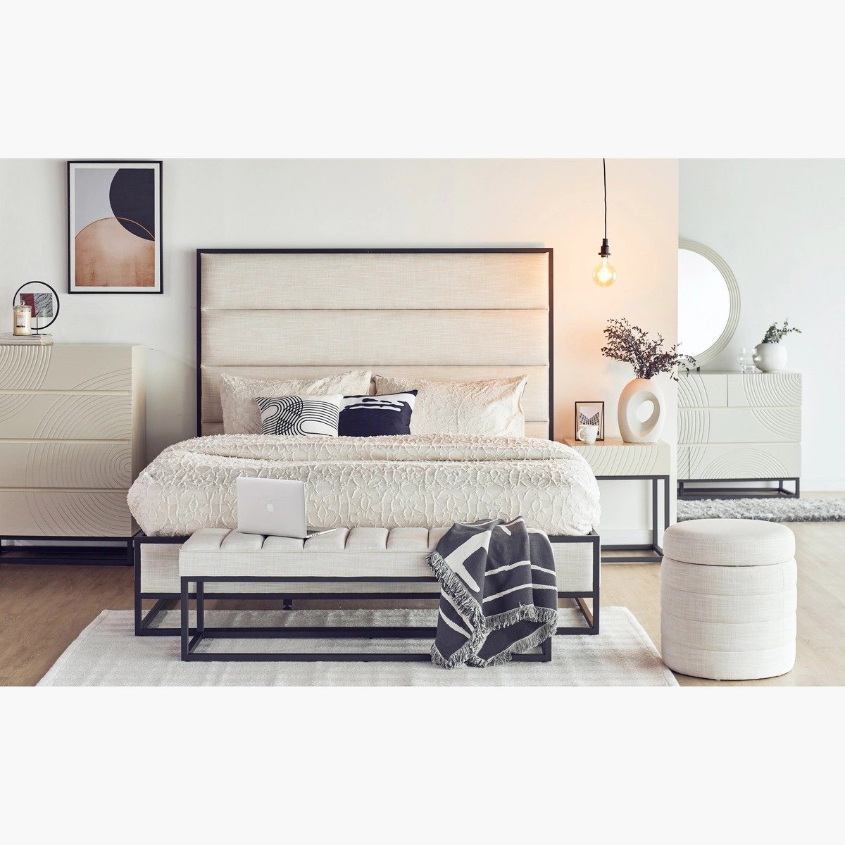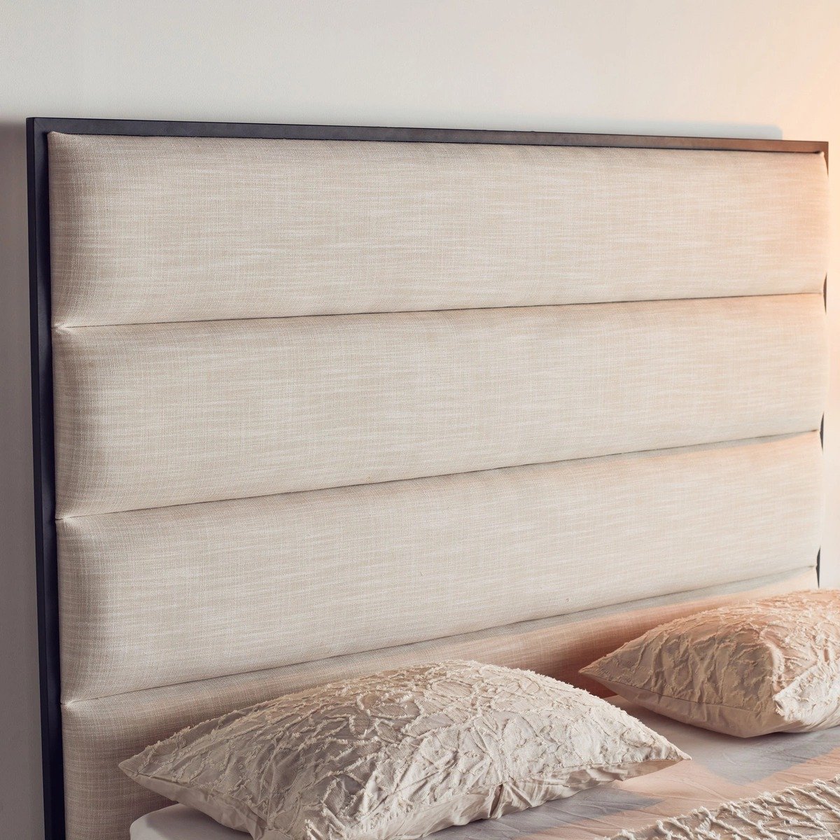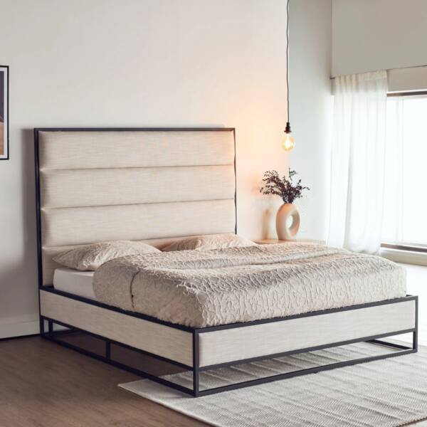 هذا السرير بحجم كينج سيكون اختيارًا ساحرًا لغرفة نومك. مصنوع من الخشب الهندسي بلوح رأسي أنيق، ويتميز مسند الرأس الخاص به بنمط جميل، يمكن تنظيفه بشكل فوري من البقع من أجل صيانته.