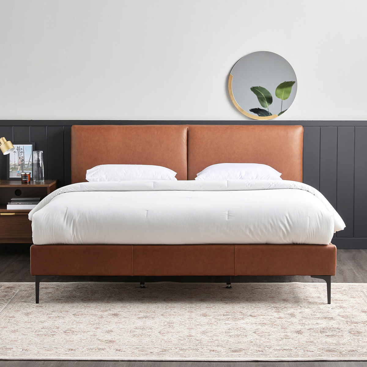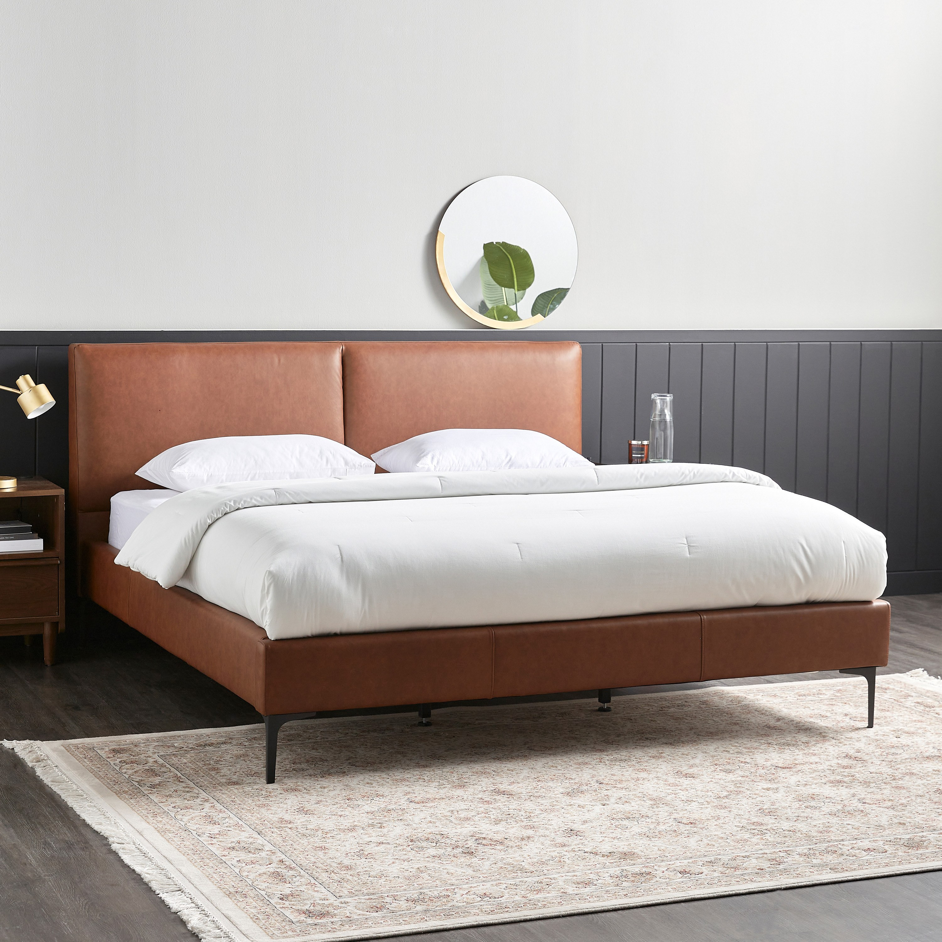 عصري ومريح بجاذبية أنيقة، سيضفي هذا السرير المصمم بحجم كينج مظهرًا ساحرًا على غرفة نومك. يأتي مُصمّم بقاعدة متينة، مصنوع من الخشب المتين بلوح أمامي منجد وألواح جانبية وأرجل متينة تضفي مظهرًا عصريًا على العديد من الديكورات الداخليّة.
