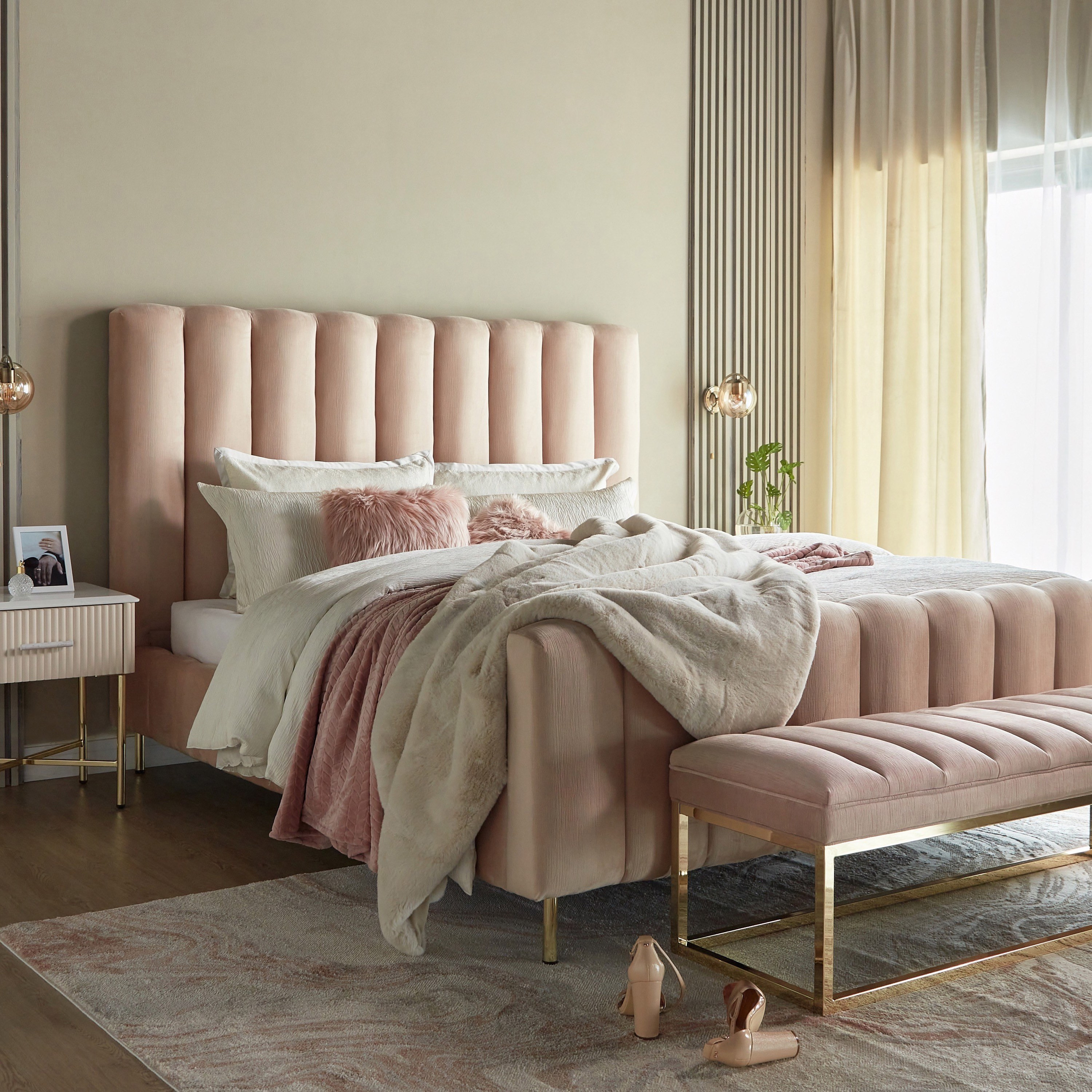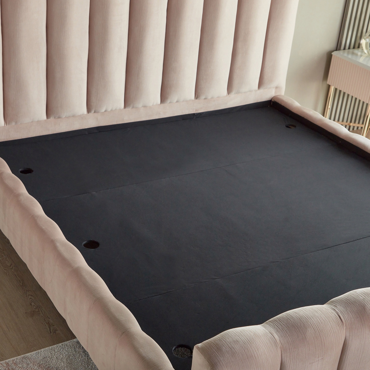 جدّدي أثاث غرفة نومك بالحصول على هذا السرير الأنيق. مصمم بطابع عصري ومقاس كينج مناسب، يتمتع بتنجيد قماش فاخر وقوائم معدنية، كما يأتي بنظام يدعم ألواح السرير يعزز من متانته وجودته، مريح للغاية ويتمتع بلوح قدم يضيف إلى جاذبية التصميم.