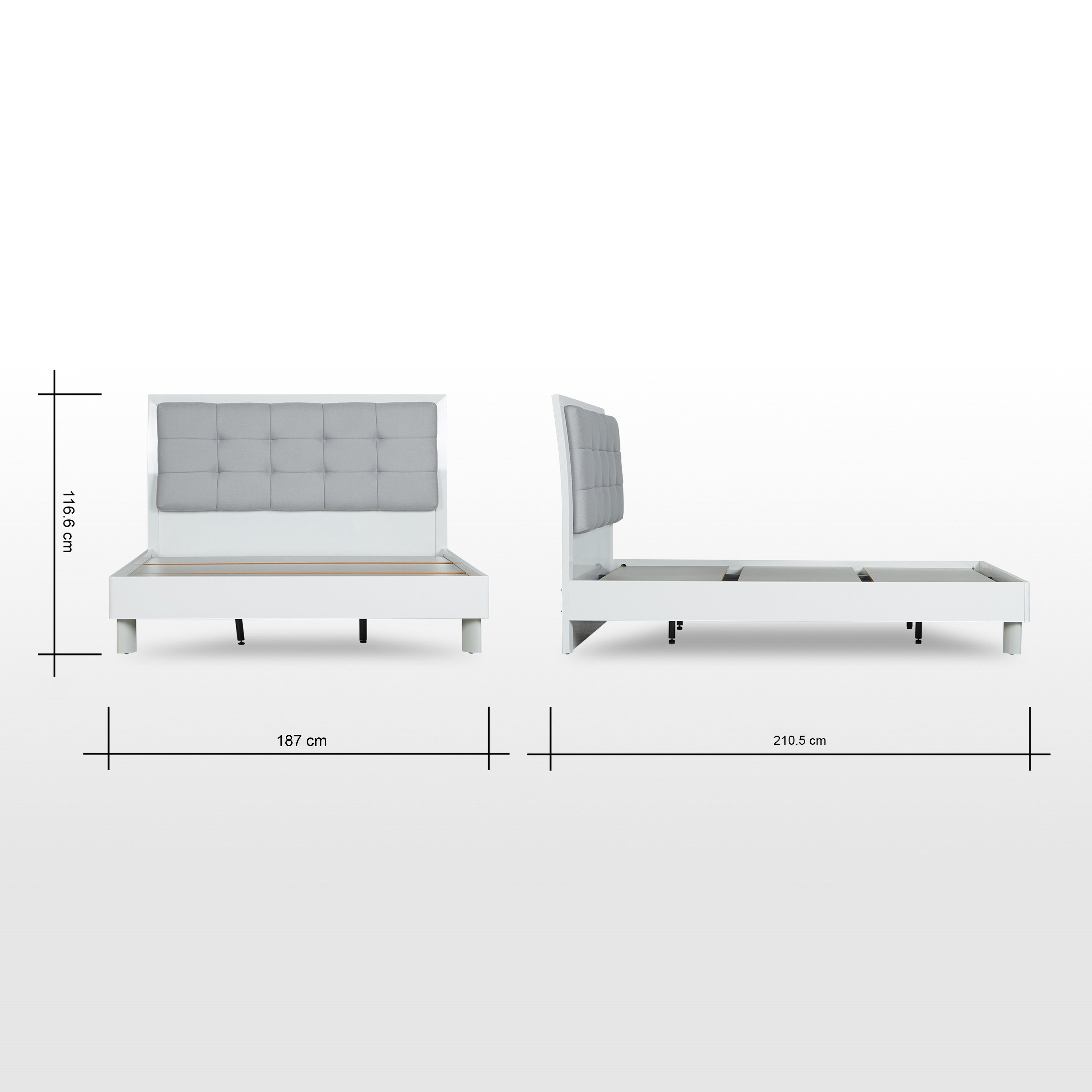 عززي من أناقة قطع الأثاث في منزلكِ باقتناء هذا السرير كينج الرائع، مصمم بطابع عصري ولوح رأسي معنقد، ومصنوع من خامات الخشب الهندسي عالية الجودة بتشطيب منجّد يضفي علي لمسة ملكيّة. هذا السرير متين وسهل التّنظيف بمسحة رقيقة فقط.