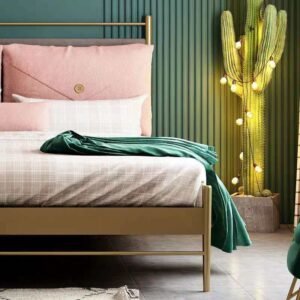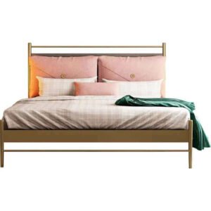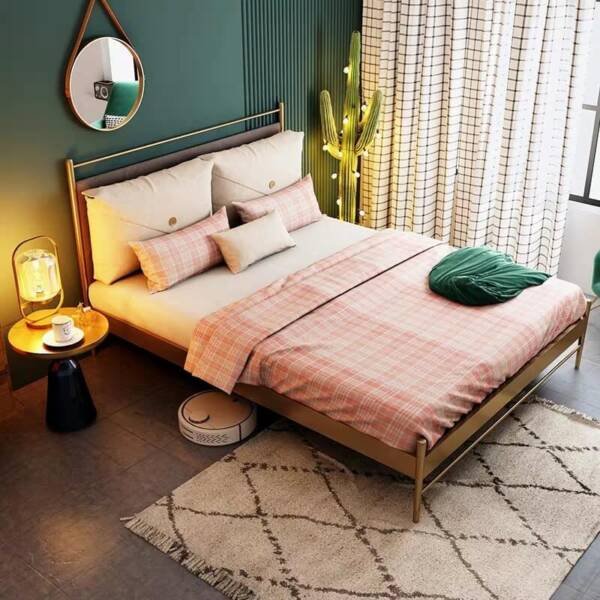 وصف المنتج : سرير معدنى على النمط الحديث المقاس : 215(D)*200(W)*108(H) سم الخامة : هيكل من الحديد المتين المطلي بطلاء مضاد للإزالة ومضاد للصدأ ومغطى بطبقة مريحة من مزيج القطن والكتان مسند ظهر من القطن المرن المريح المغطى أرجل معدنية سميكة ومتينة ذو قوة تحمل عالية مع ثبات قوي للمنتج تصميم بسيط وعصري منتج عالي الجودة بخامات