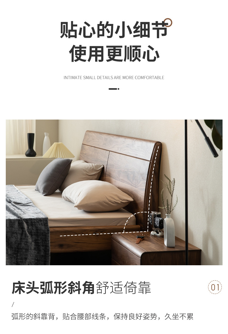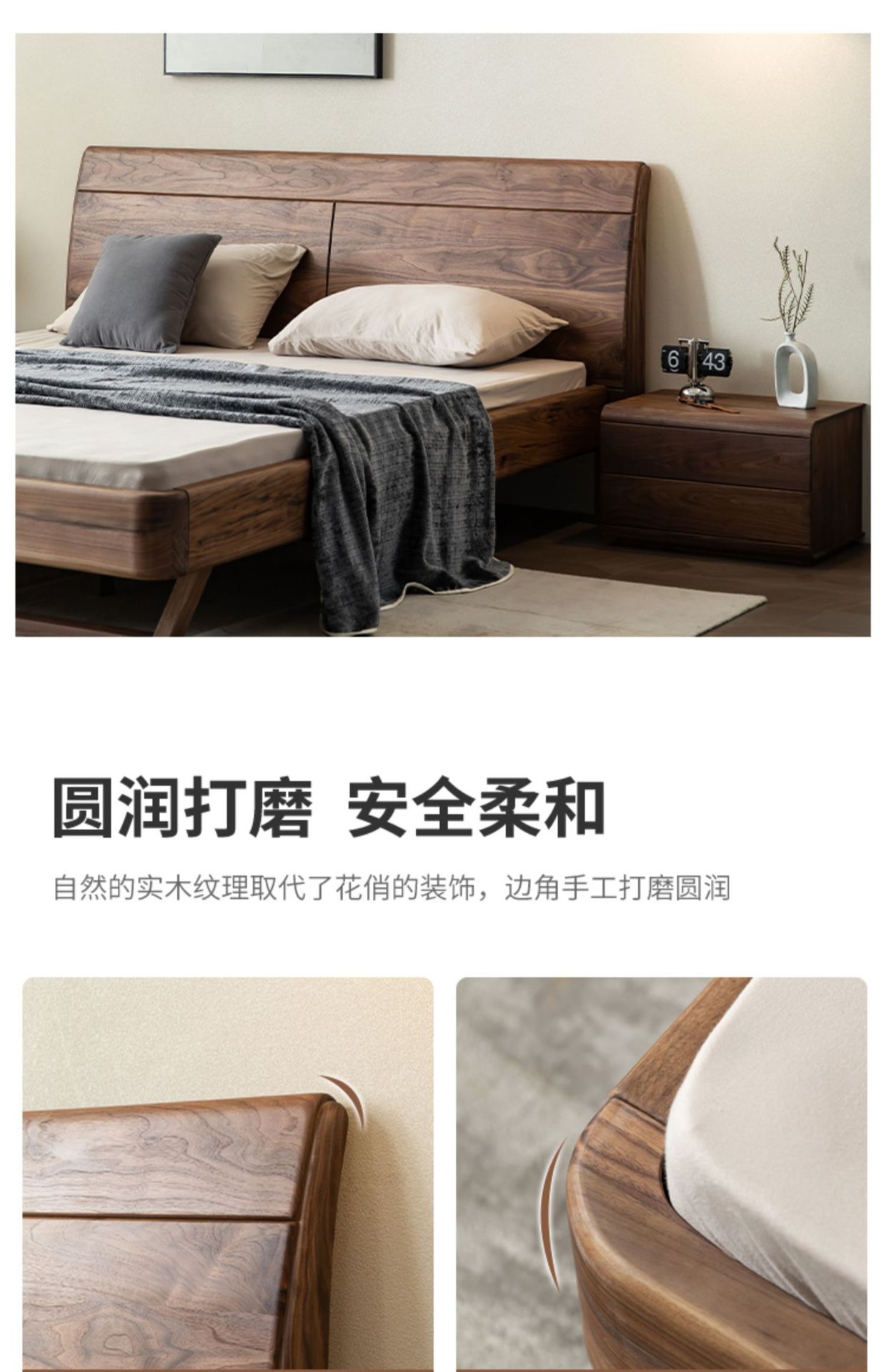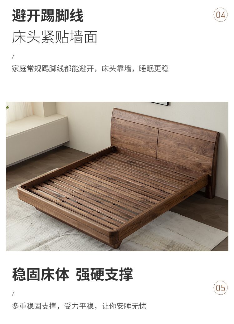 مصنع هيكل السرير من خشب الجوز الاسود عالي الجودة والقوة